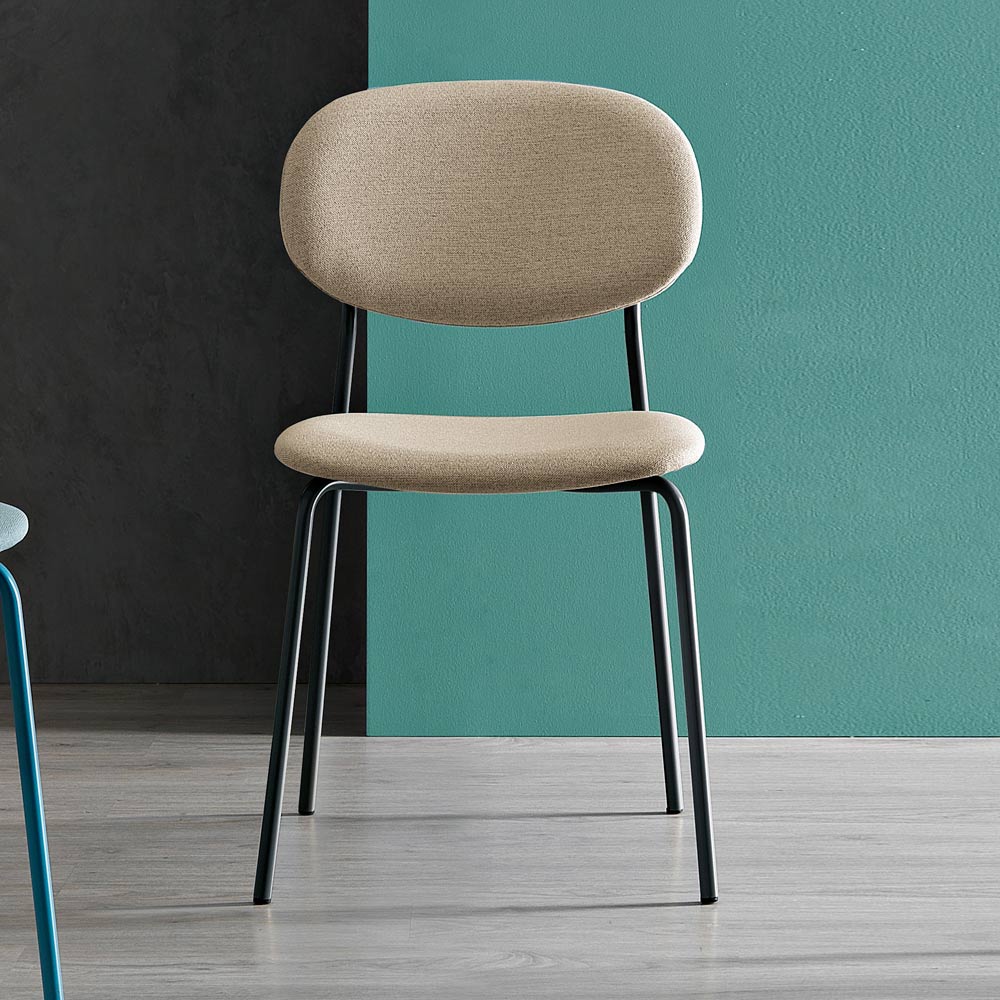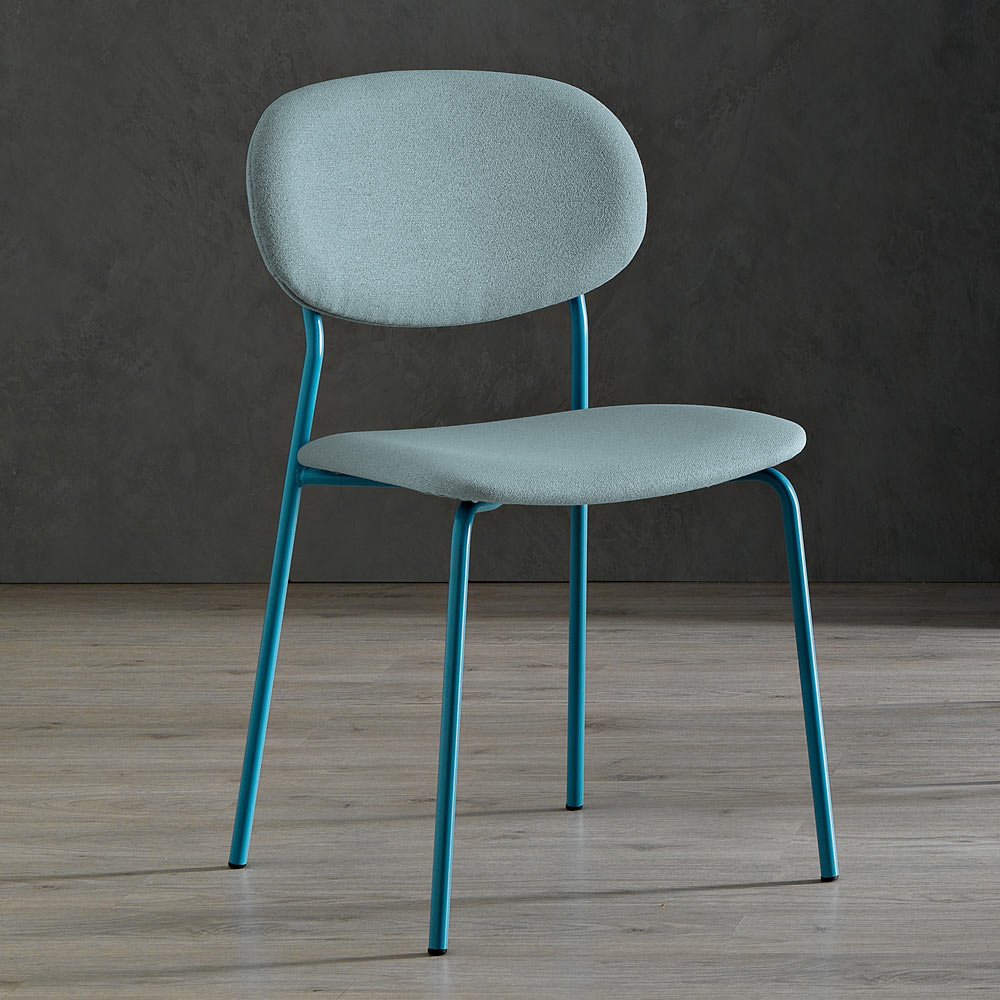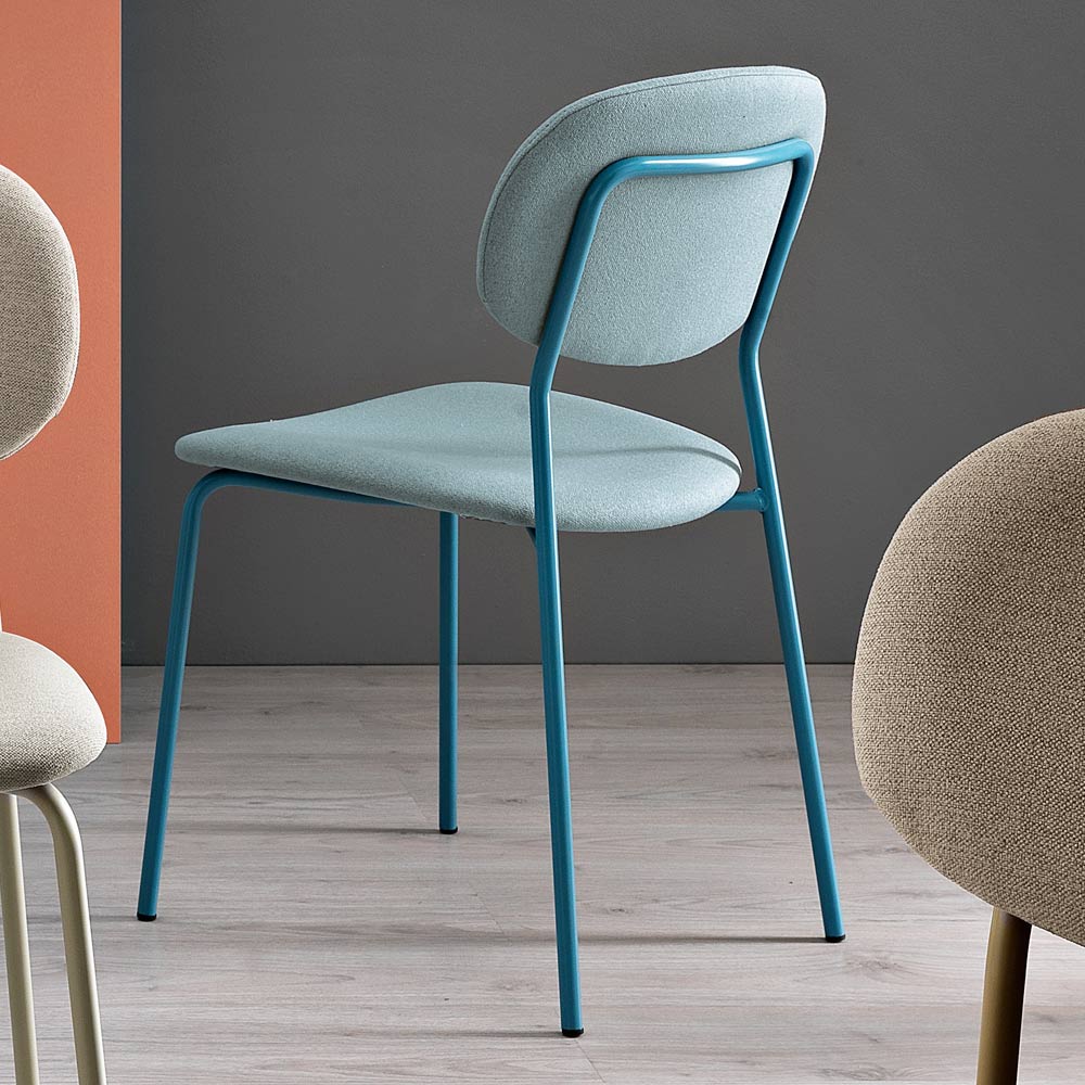 Mit seiner ergonomischen Silhouette verkörpert dieser Stuhl Komfort. Die robusten und doch eleganten Metallbeine unterstützen das geschwungene Design des Sitzes und bieten Stabilität, ohne die Ästhetik zu beeinträchtigen. Der Kontrast zwischen den kräftigen Farben der Sitze und den dünnen Strukturen ist eine bewusste Wahl, die die Vielseitigkeit des Designs erhöht und es an eine Vielzahl von Innenumgebungen anpasst.