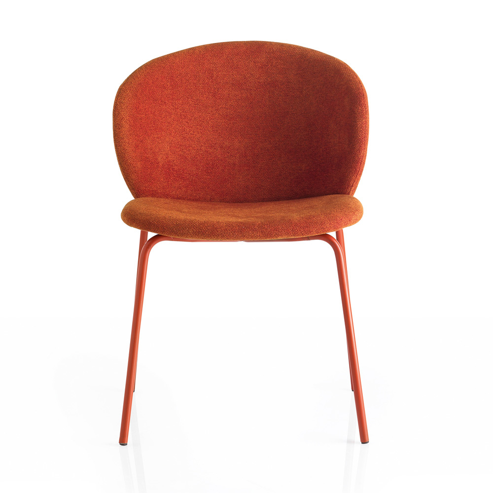 Wohnzimmerstuhl mit Monocoque-Sitzfläche und Stoffbezug sowie Metallbeinen (Durchmesser 16 mm) , komplett in Italien hergestellt.