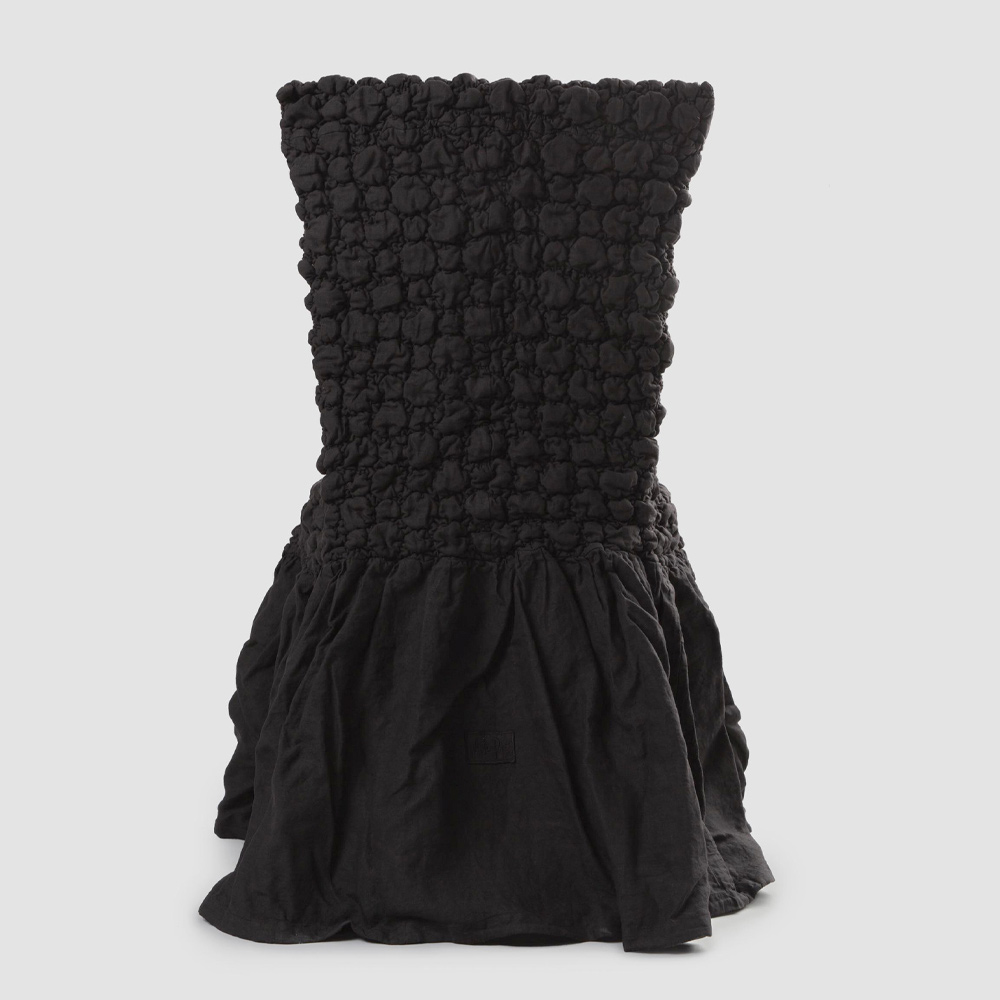 Stuhlbezug aus geprägtem hellem Leinen mit weißem, schwarzem, altem Butter- oder Mineral-Volant aus Italien.