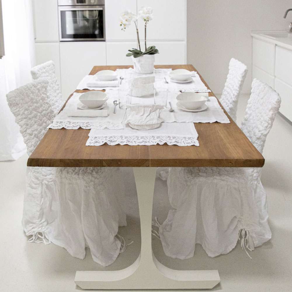 Stuhlbezug mit eleganter Rückenlehne für Wohnzimmer aus besticktem Leinen - Panteo