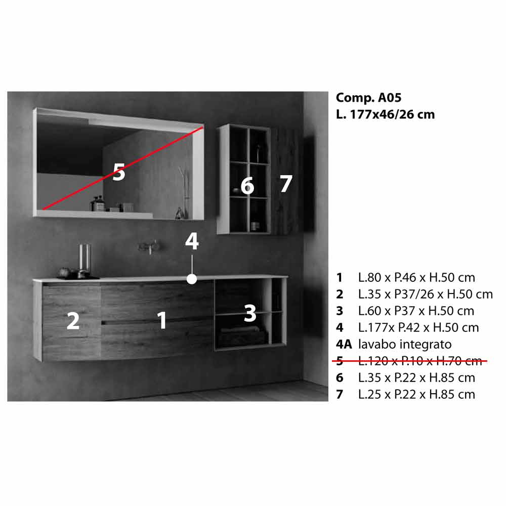 Die Besonderheit dieser Zusammensetzung wird durch das eingebaute Waschbecken gegeben, das durch zwei seitliche Seiten gekennzeichnet ist, die sanft zum Becken hin abfallen.