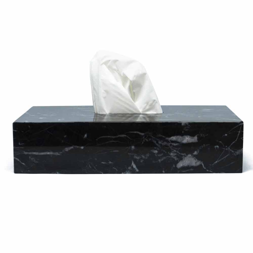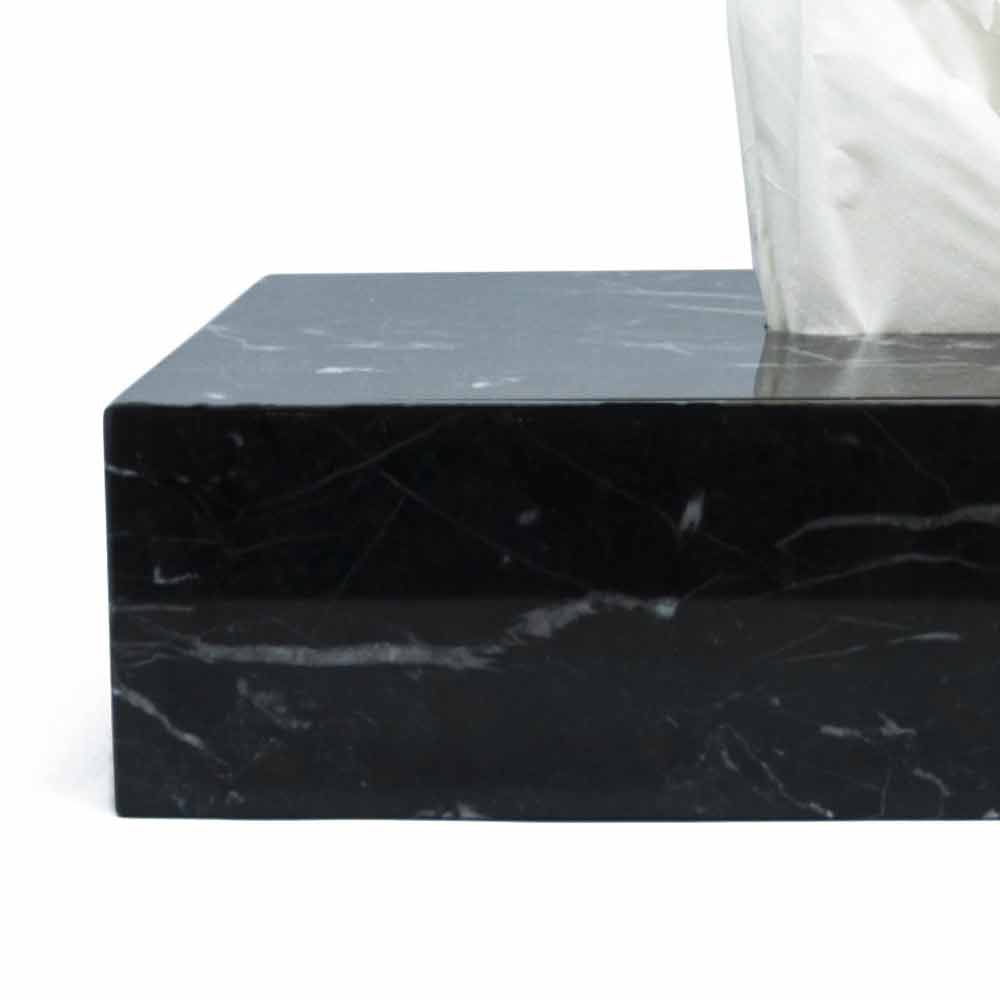 Taschentuchhalter aus schwarzem Marquinia-Marmor mit elegantem Design, hohe Qualität made in Italy.