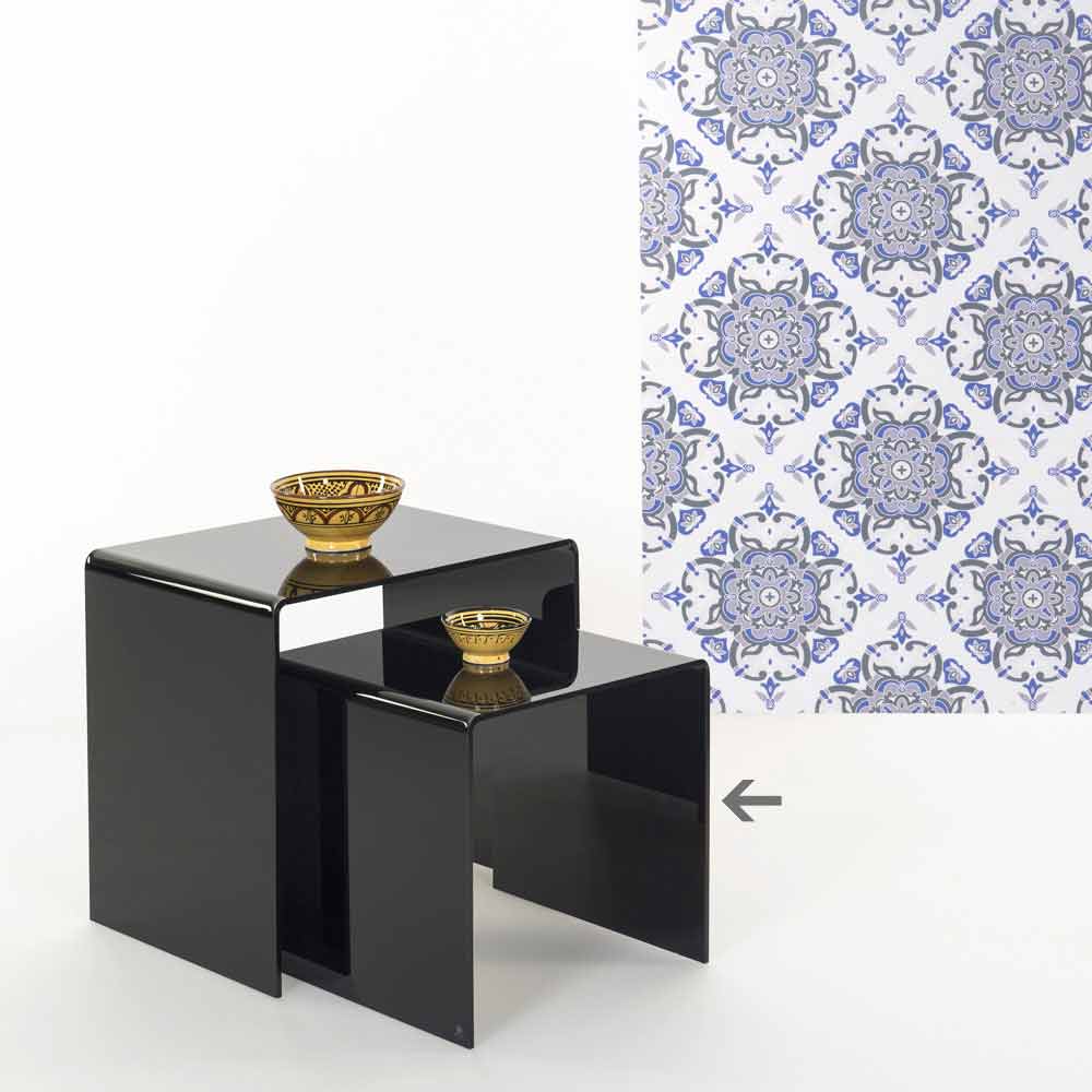 Terry Kleiner moderner schwarzer Couchtisch 40x40cm, made in Italy Vielseitiger schwarzer Couchtisch / Nachttisch, inspiriert von der Geometrie der 80er Jahre, aus 100% reinem Polymer-Plexiglas, lasergeschnitten und bei hohen Temperaturen gebogen. Die wichtige Dicke macht die Struktur völlig selbsttragend. Es kann einzeln verkauft werden, ist aber perfekt, wenn es mit dem Twin TERRY BIG kombiniert wird. Plexiglas ist stoßfest, nicht verformbar, unveränderbar und wärmeisolierend. Die Helligkeit und Helligkeit werden über die Zeit konstant und unverändert beibehalten. Das PMMA Plexiglas aus reinem Polymer ist ungiftig, hypoallergen, geruchlos und antibakteriell. 100% recycelbar. Entworfen, entworfen und hergestellt in Italien, mit italienischen Materialien.