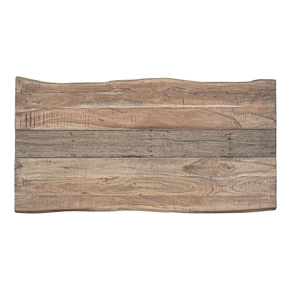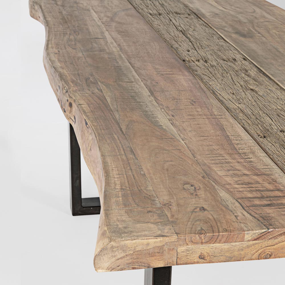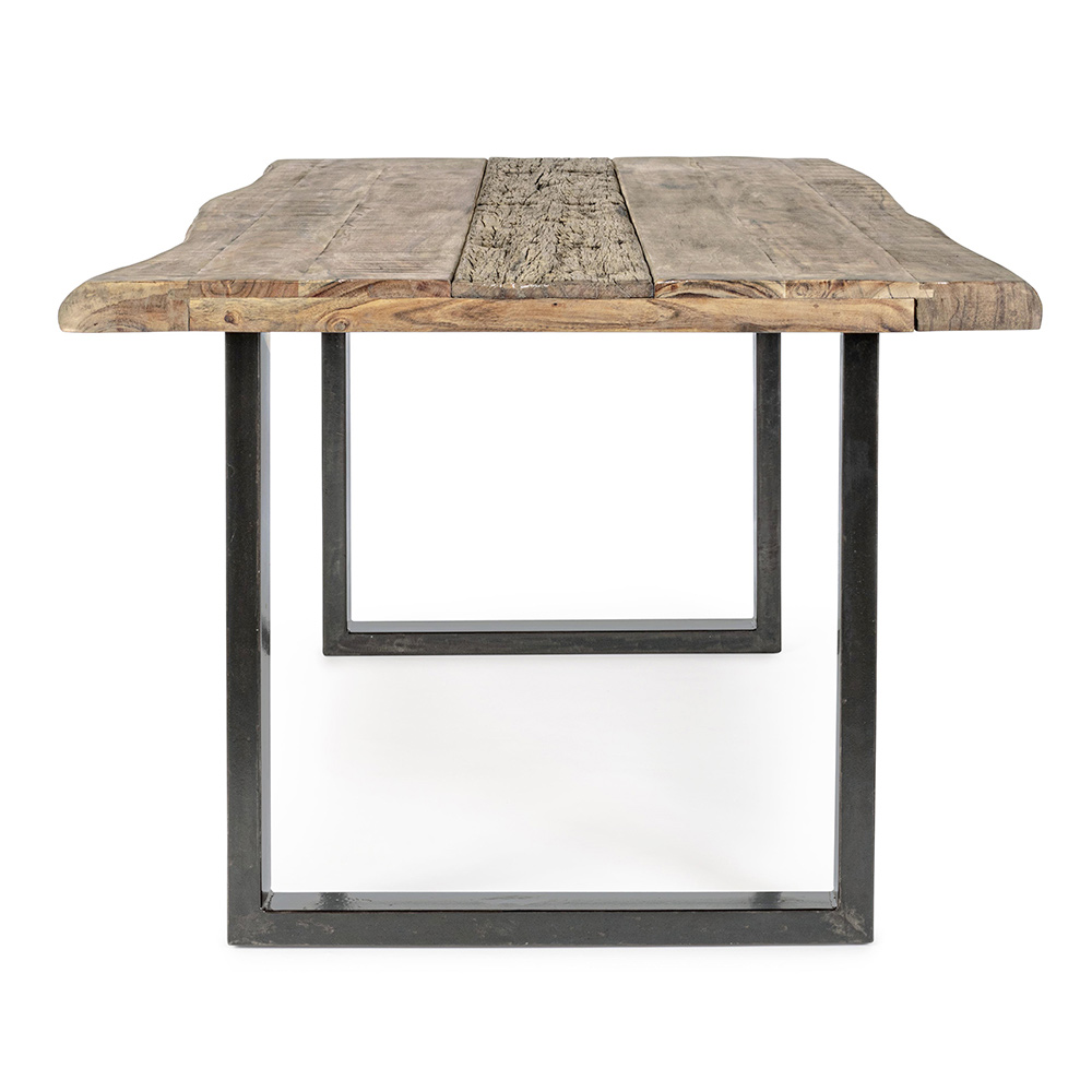 Esstisch aus Akazienholz mit recyceltem Einsatz und Stahlgestell, 8 Personen.