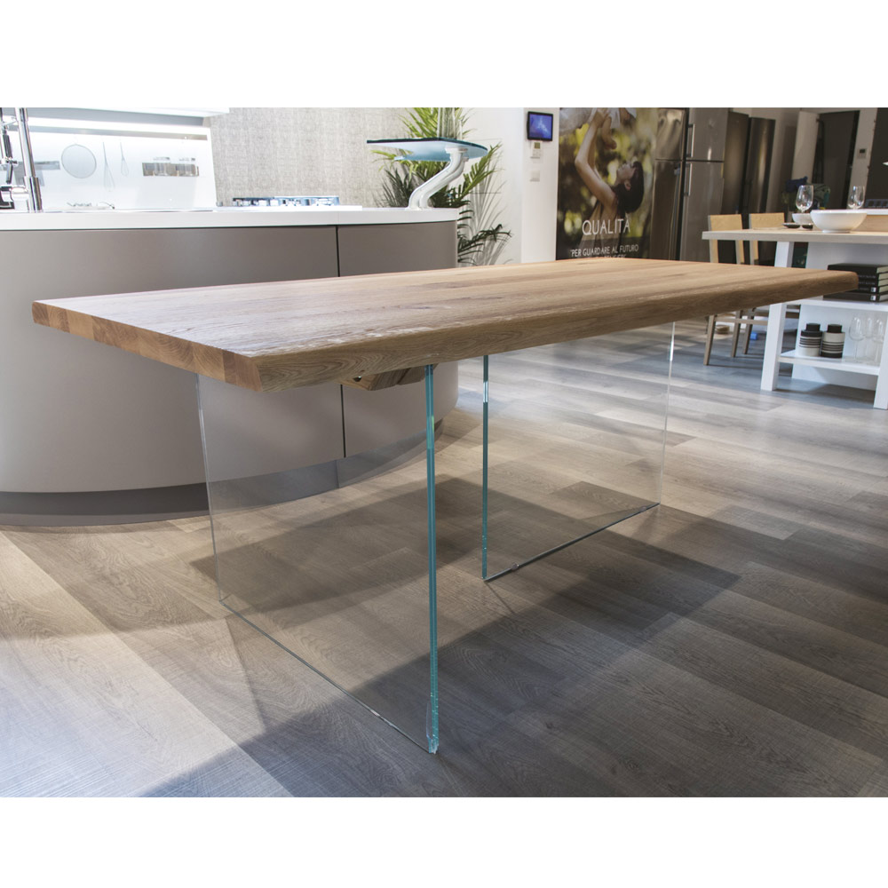 Tisch aus massiver Eiche und Kristallsockel Made in Italy - Noelia