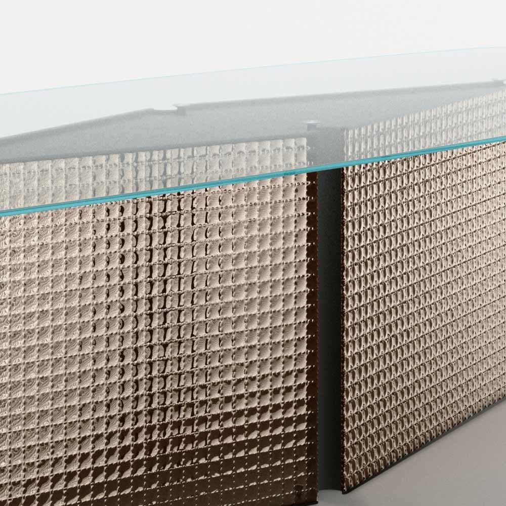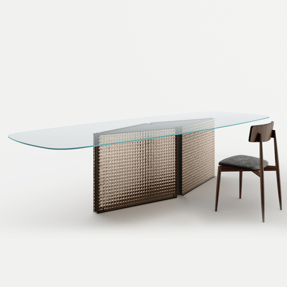 Tisch mit geformter Glasplatte und Untergestell aus geschmolzenem Glas und Metall - Foglietto