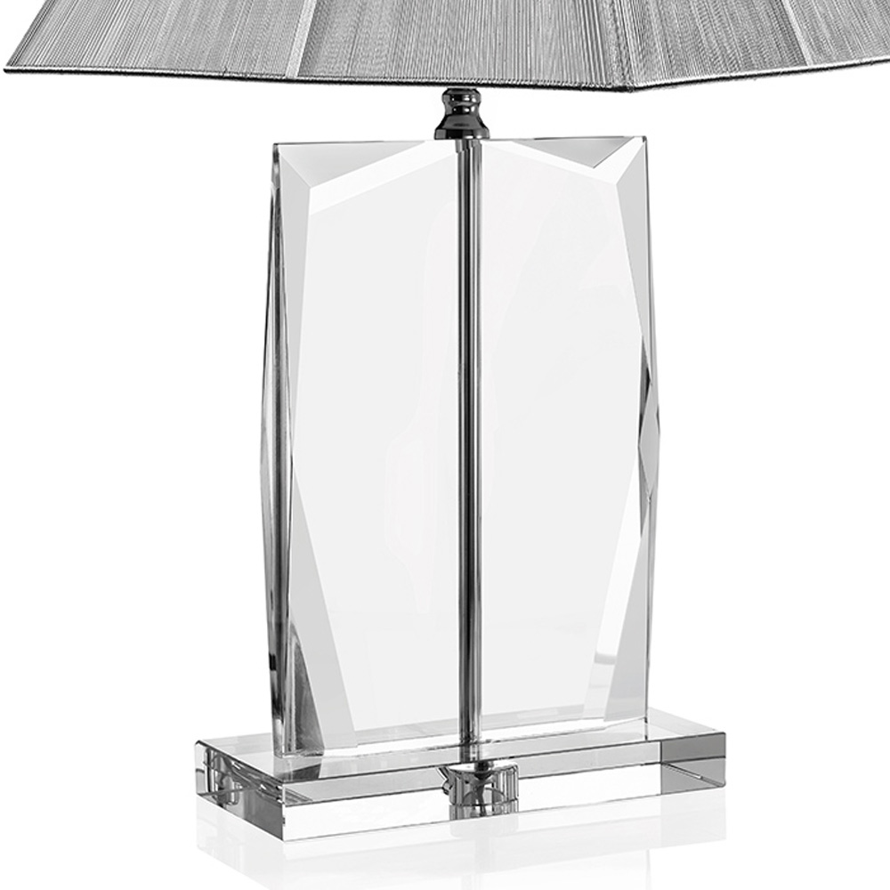 Die Tischleuchte hat einen schönen Glanz Design mit der Basis des monumental kostbaren Kristall und einem quadratischenSchirm aus Silberfäden hergestellt.