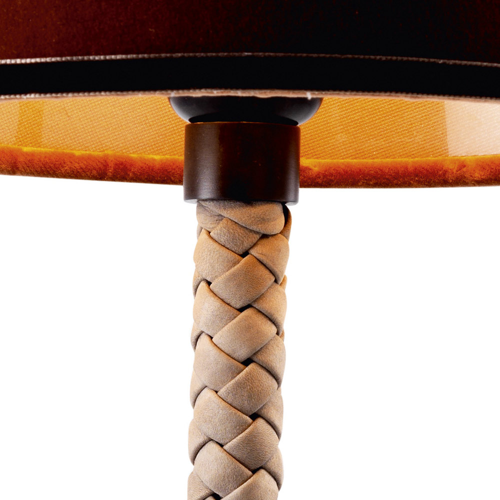 Tischlampe aus Stoff und Leder in Italien Grilli Snake Tischleuchte in modernem Design, einzigartig und elegant. Bestehend aus einem Metallträger, der mit gerolltem Leder überzogen ist und eine manuelle Weberei aufweist. Stoffhut.
