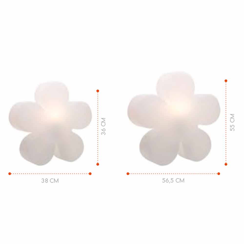 Stehlampe in zwei Größen und verschiedenen Farben in Form einer Blume für drinnen oder draußen.