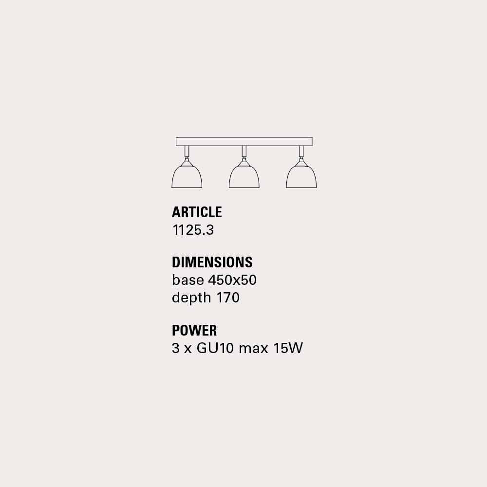Abmessungen: Sockel L.45xH.5 TH.17 Leuchtmittel: 3 x GU10 max 15W IP 20 - nicht im Lieferumfang enthalten