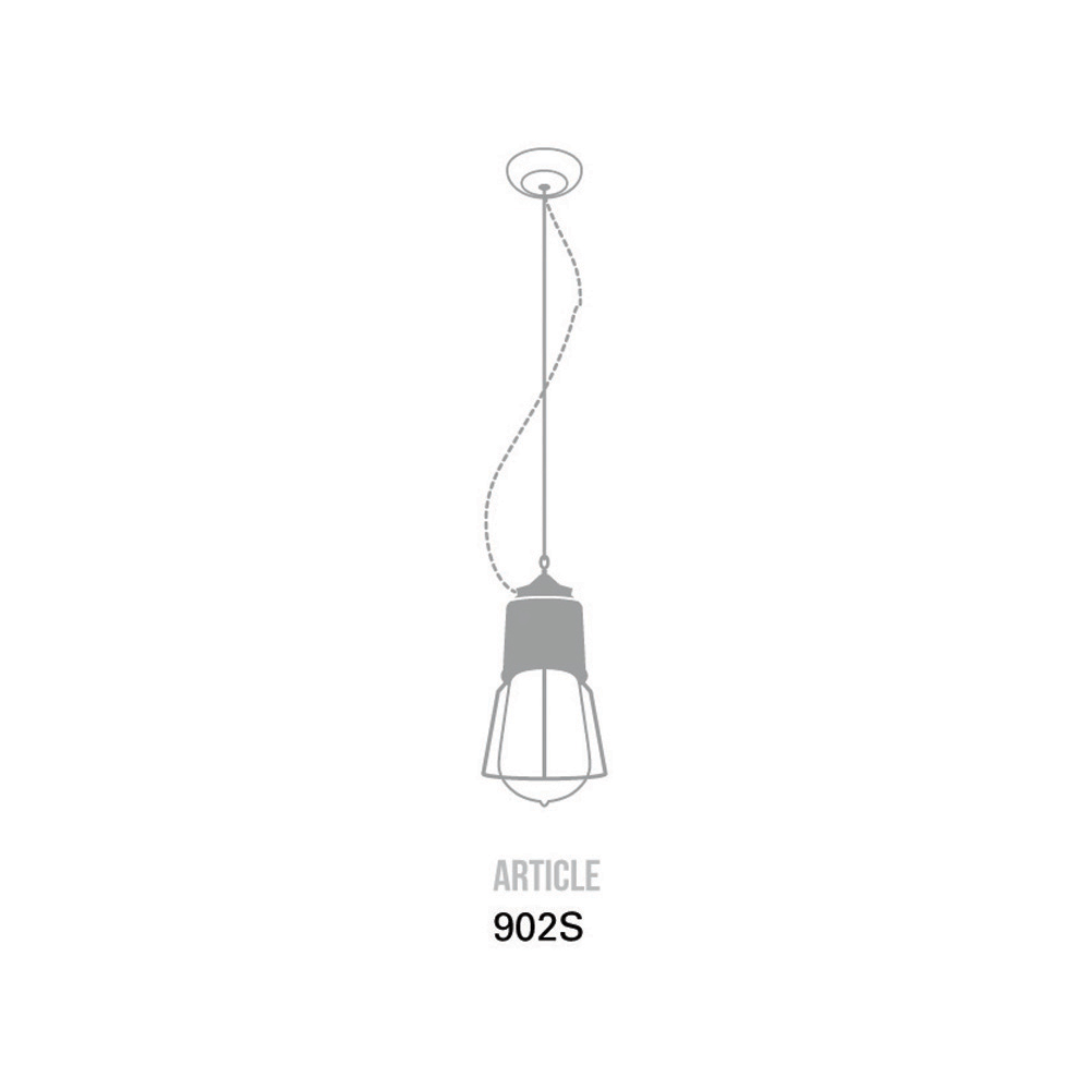 Einzelne Pendelleuchte mit Rosette. Abmessungen : Basis Ø12 Käfig Ø16 Glas Ø10 H.150 Leuchtmittel : 1 x E27 max. 70 W, IP 44 – nicht im Lieferumfang enthalten