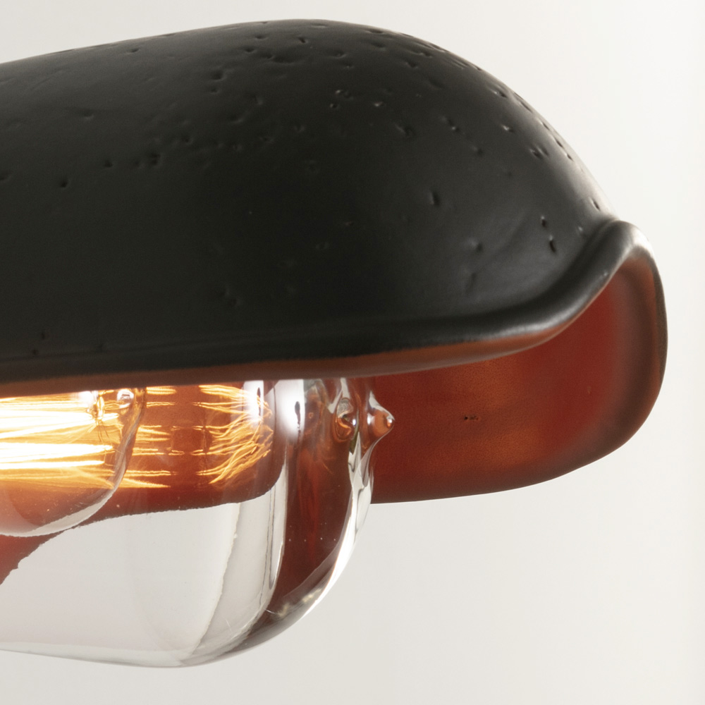 Außenwandleuchte, hergestellt in Italien durch eine 100% handwerkliche Produktion aus toskanischer Majolika und transparentem mundgeblasenem Glas. Ein Vintage-Stil , der an die in der Vergangenheit verwendeten Designs erinnert, die in einem zeitgenössischen Schlüssel überarbeitet wurden, um eine innovative und raffinierte Beleuchtungsidee zu erhalten, ideal für diejenigen, die es lieben, wunderbare Kontrastspiele in ihren Außenbereichen für ein exklusives und beispielloses Ergebnis zu schaffen. Ihre Ästhetik wird durch geschwungene und harmonische Linien und Merkmale unterstrichen, die die Lampe charakterisieren, ihr ihre starke Persönlichkeit und ihren exklusiven Charakter verleihen und sie perfekt für eine funktionale und hochwertige Beleuchtung machen, die eine warme und einladende Atmosphäre schafft.