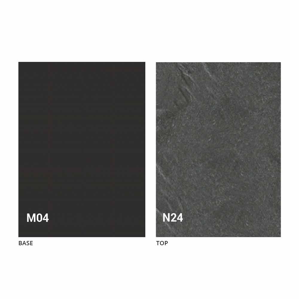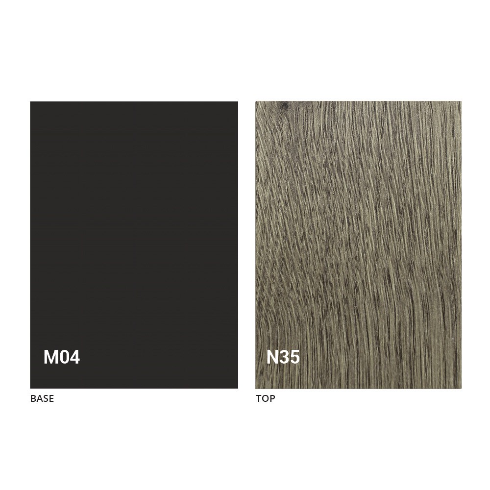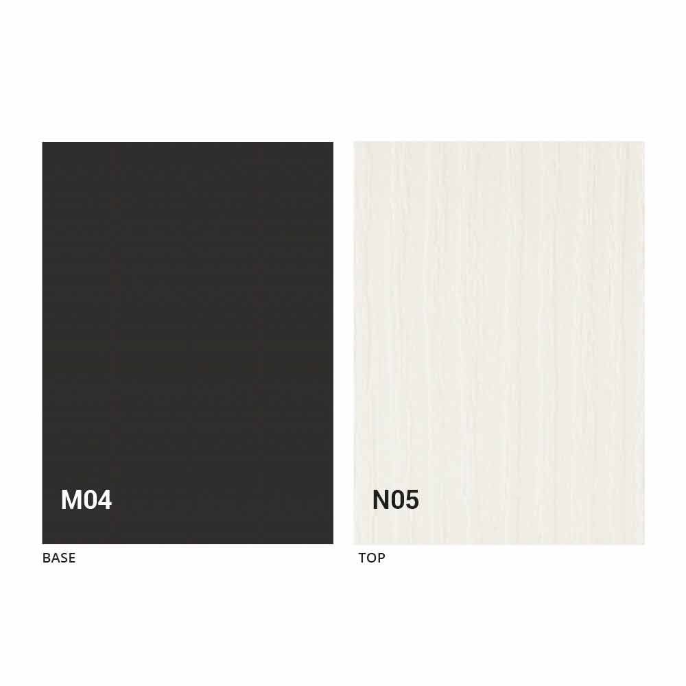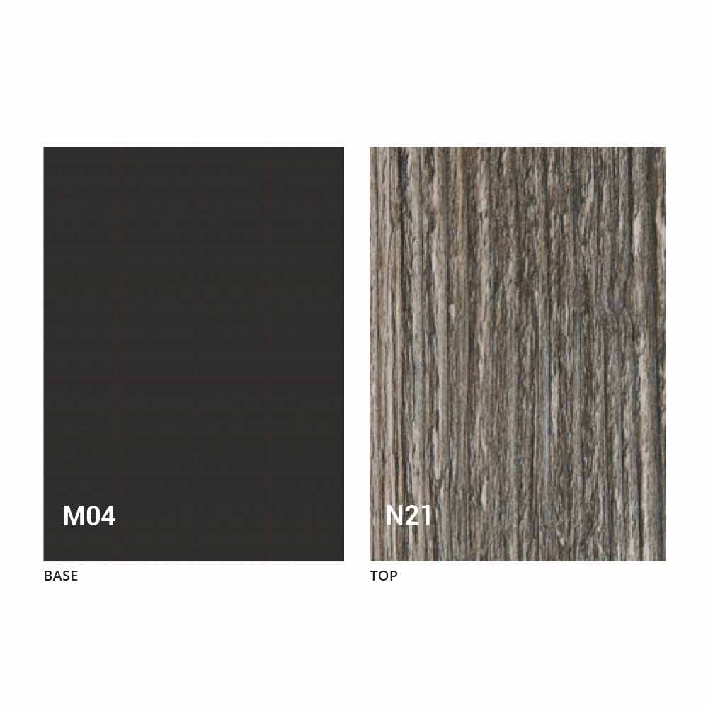 - Tischplatte aus aschgrauem, harzbeschichtetem Holz;