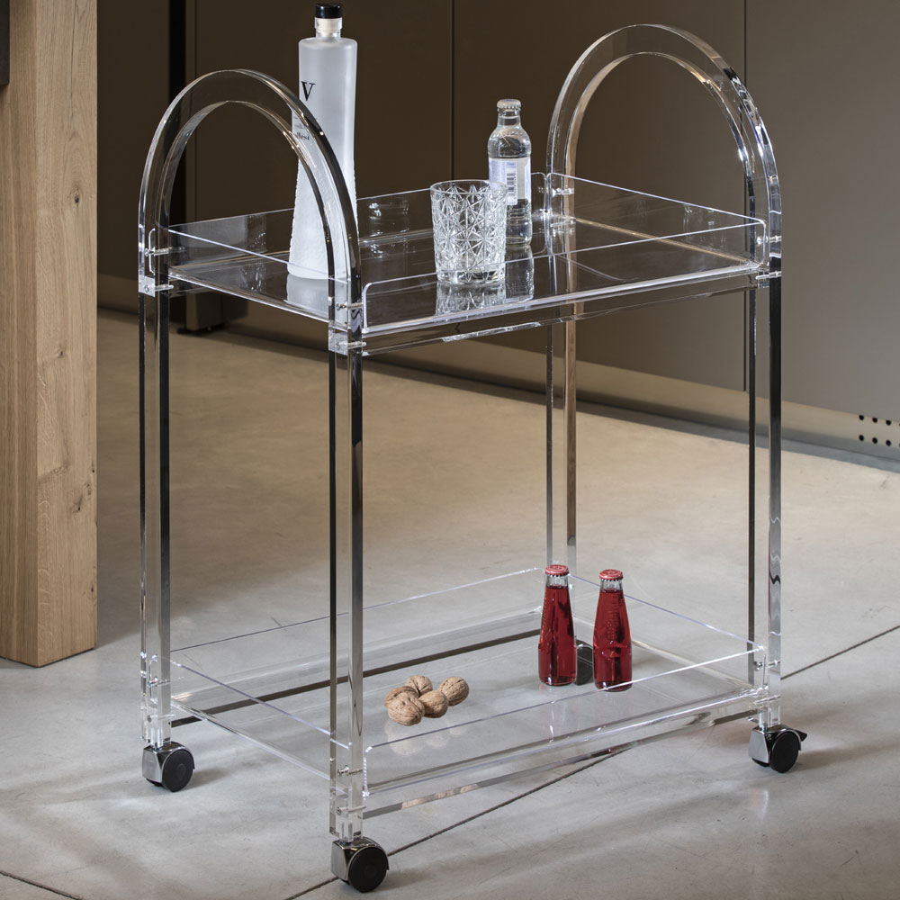 Trolley aus transparentem Acryl mit Rädern im italienischen Design.