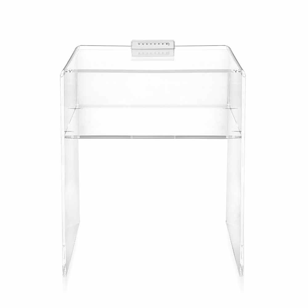 Ein "Touch" des Lichts: einfach berühren und der praktische Adelia-Nachttisch aus 100% PMMA-Plexiglas aus transparentem, jungfräulichem Polymer leuchtet auf und erhellt den Raum. Das eingebaute LED-Licht ist abnehmbar; Der Akku ist Lithium und das Netzkabel ist im Lieferumfang enthalten. Das Licht wird einfach durch Berühren des Leuchtkörpers ein- und ausgeschaltet. Die Helligkeit und Helligkeit werden über die Zeit konstant und unverändert beibehalten. PMMA Plexiglas aus reinem Polymer ist ungiftig, hypoallergen, geruchlos und antibakteriell. 100% recycelbar. Entworfen, entworfen und hergestellt in Italien, mit italienischen Materialien.