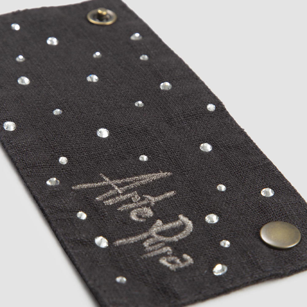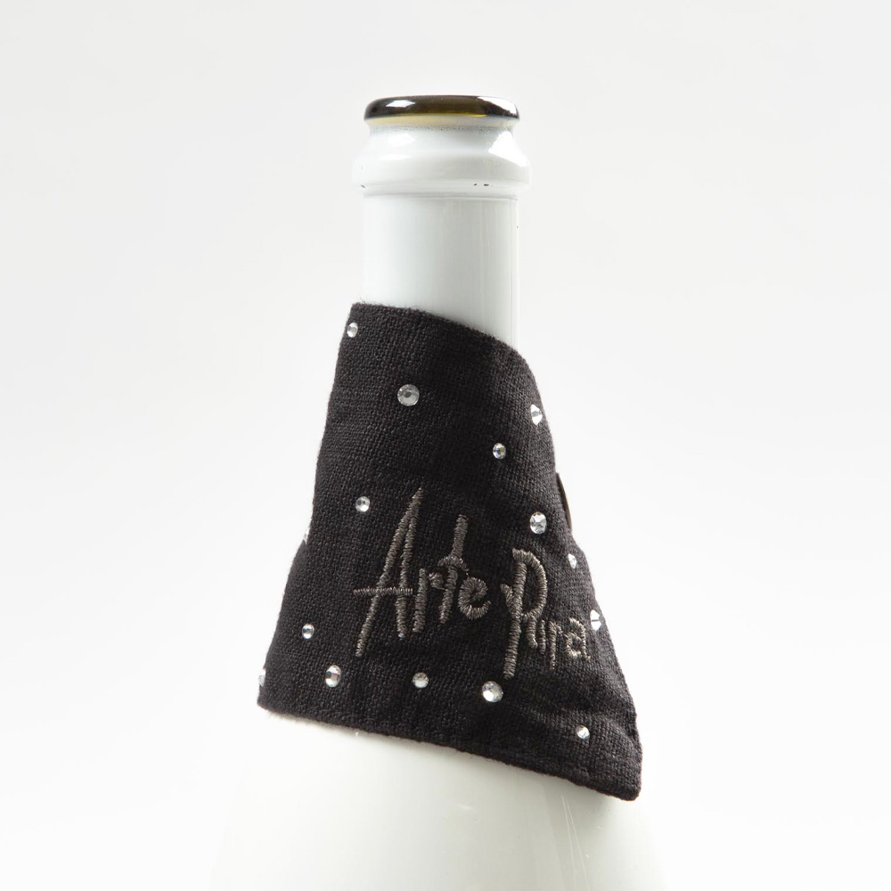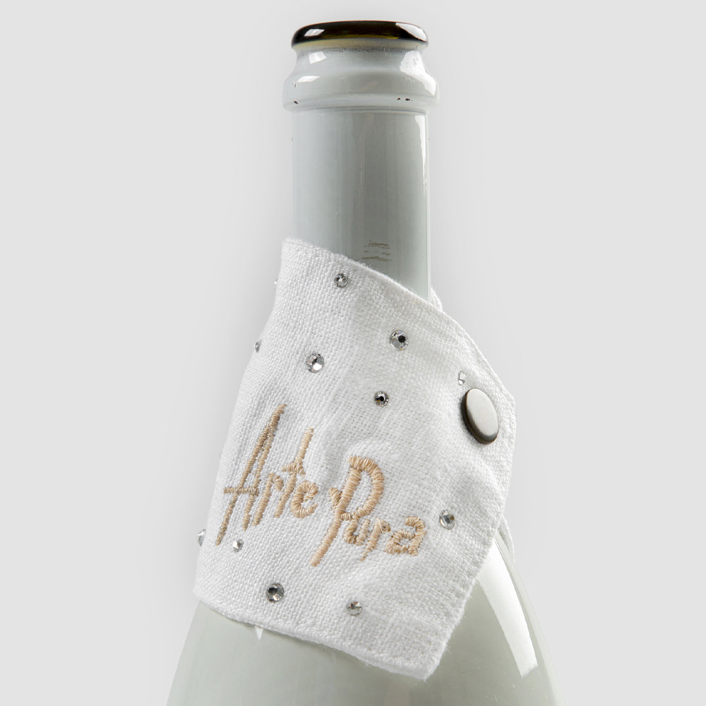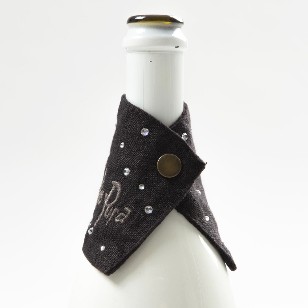 Tropfer für Flaschen aus weißem oder schwarzem Leinen mit dekorativen Kristallen, hergestellt in italienischer Qualität.
