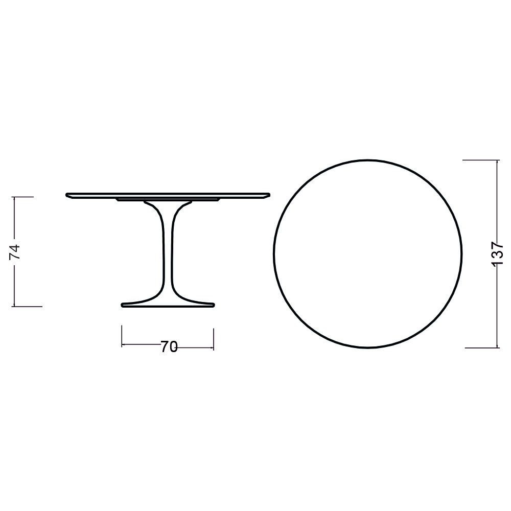 • Tischplattendurchmesser 137 x Höhe 74 cm / Fußdurchmesser 70 cm