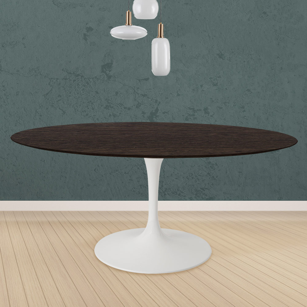 linearen und eleganten Ausführungen. Die Verbindung zwischen der Platte aus mokkagebeizter Eiche und dem Gestell aus poliertem Aluminium garantiert