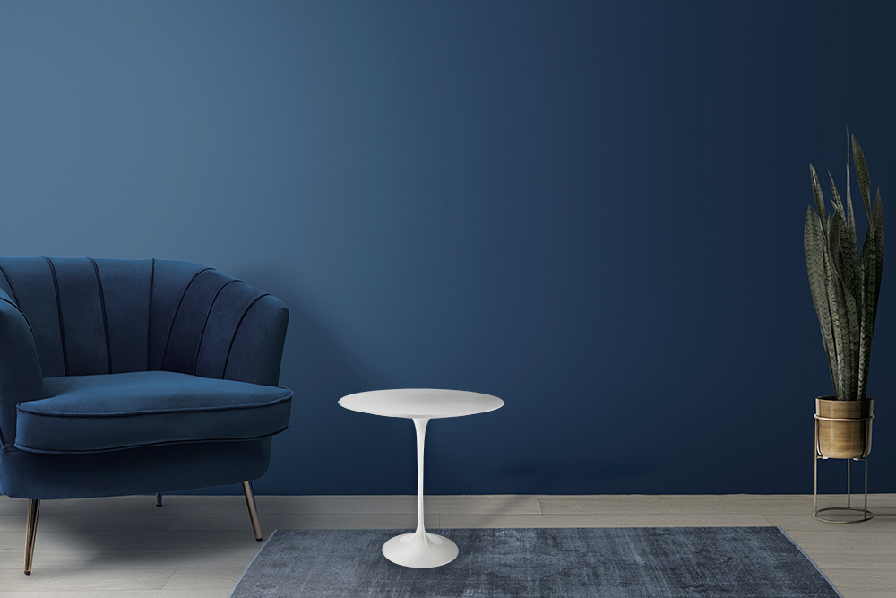 Tulip Saarinen Couchtisch H 52 mit ovaler Platte aus weißem Flüssiglaminat, hergestellt in Italien – Scarlet