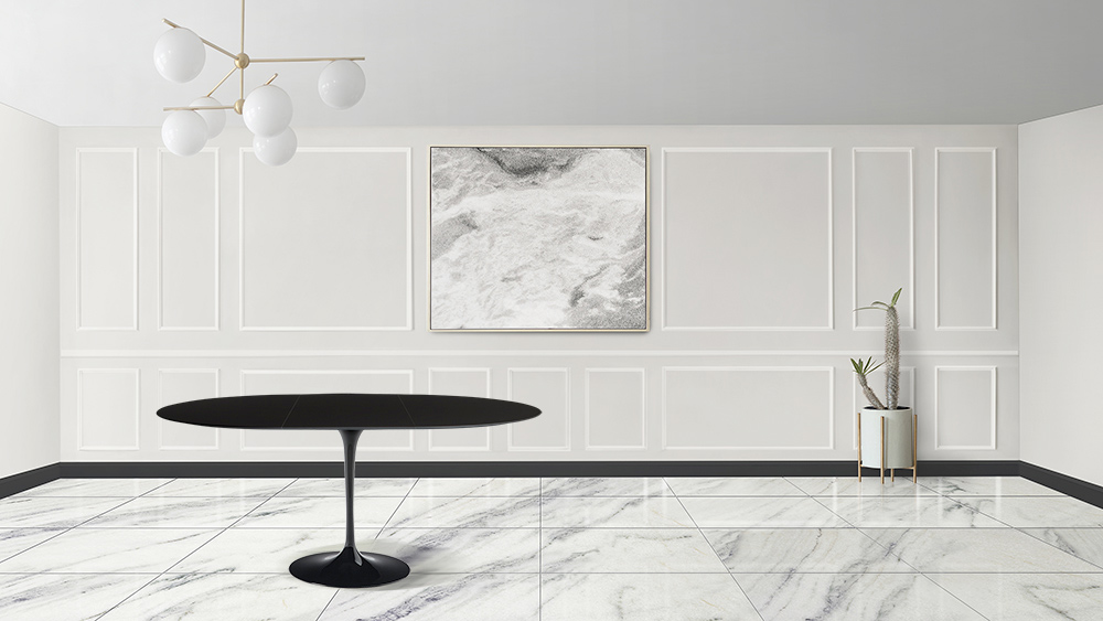 Ausziehbarer Esstisch bis 187 cm mit schwarzem Flüssiglaminat Platte und schwarzem poliertem Aluminium Fuß komplett Made in Italy. Dieses Möbelstück entspricht den Anforderungen an Funktionalität und Anpassungsfähigkeit in jeder Wohn- und Küchenumgebung. Raffiniert und mit einfachen Linien, kann es in alle Einrichtungen eingefügt werden, um jeden Raum besser zu vervollständigen. Die Möglichkeit, ihn zu erweitern, macht ihn zu einem einzigartigen Element, das dem Bedürfnis nach mehr Sitzplätzen entgegenkommt, auch dank der Form des Sockels, der das Einsetzen mehrerer Stühle begünstigt. Dieser Tisch ist die perfekte Idee, um etwas Originales und Elegantes zu haben, aber gleichzeitig nützlich für alle Gelegenheiten und Veranstaltungen.