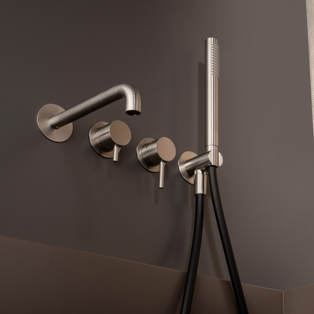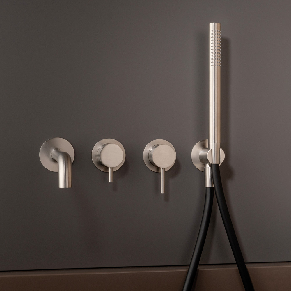 Unterputz-Wannenmischer mit Umstellhebel und Auslauf, mit 4-Loch-Brausegarnitur Made in Italy