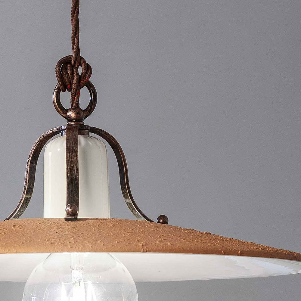 Up and Down Pendelleuchte aus Eisen und handgearbeiteter roher Keramik - Bologna