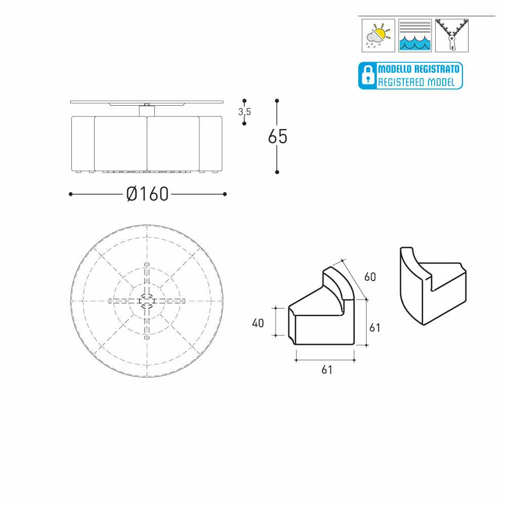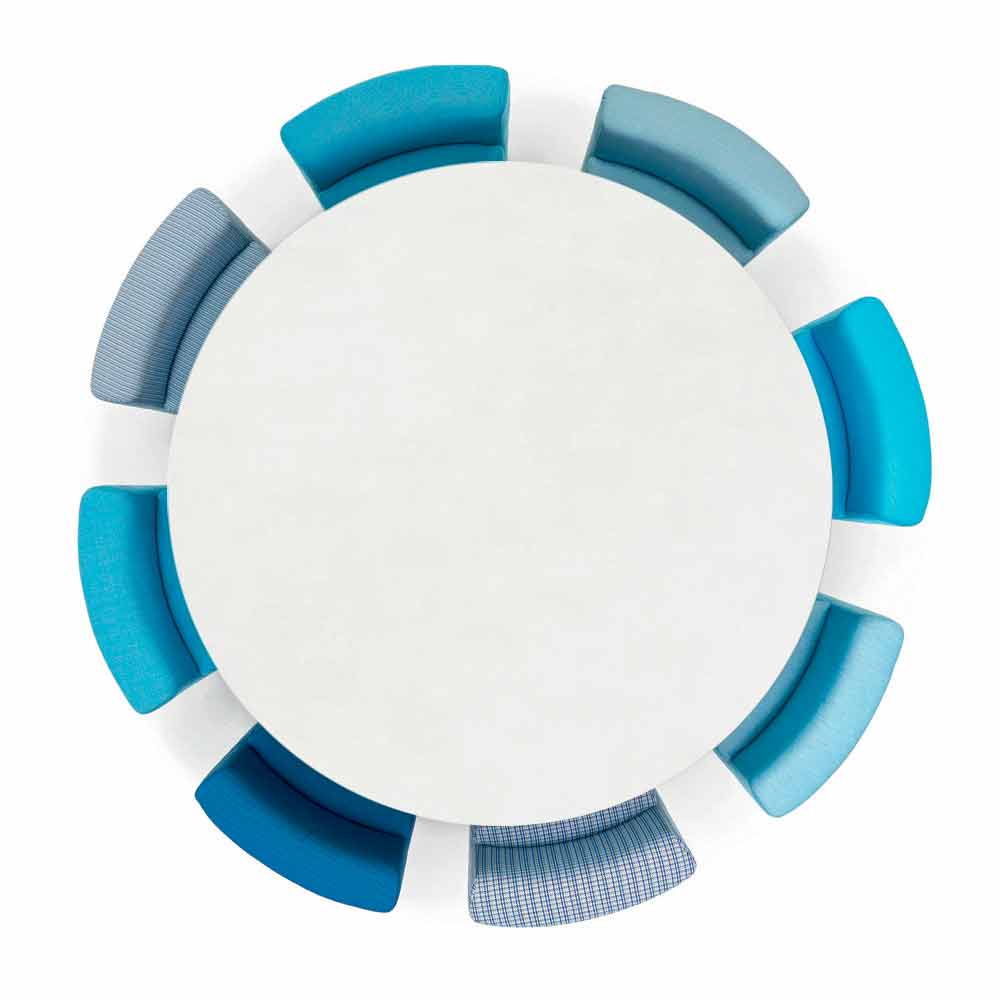 Varaschin Big&Out Outdoor Lounge Set für Garten, Bars und Restaurants. Das Lounge Set ist mit einem runden Esstisch und 8 keilförmigen Sesseln ausgestattet, die sich von innen nach aussen und umgedreht ausziehen lassen, um bei Nichtbenutzung Platz zu sparen.. Der Tisch besteht aus einer HPL Tischplatte mit einem Tischrand von 12 mm Dicke.