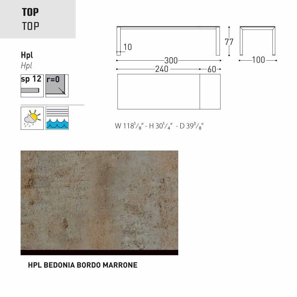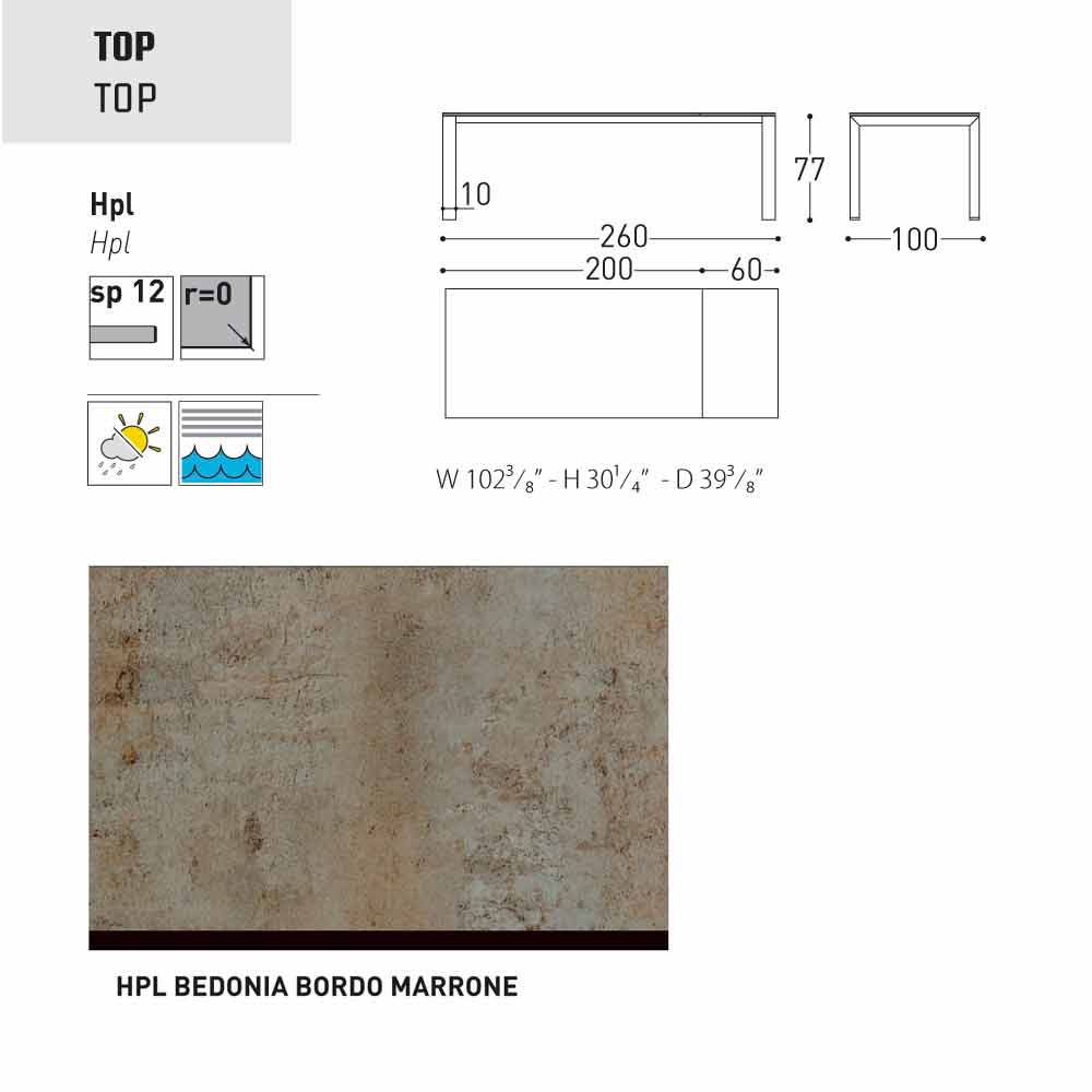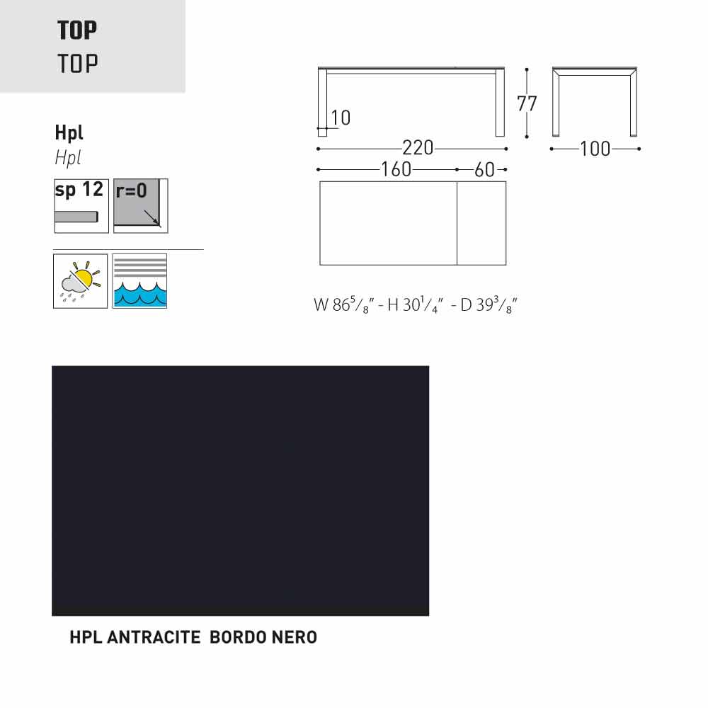 Dolmen ist ein ausziehbarer Gartentisch mit einer pulverbeschichteter Aluminiumstruktur in grau oder weiss lackiert; mit einer Tischplatte aus HPL ( Dicke 1,2) finish: seidengrau - Tischkante schwarz, weiss - Tischkante schwarz, anthrazit - Tischkante schwarz, weiss - Tischkante weiss, Zementfarben - Tischkante braun, Bedonia Stein - Tischkante braun, Cortenfarben - Tischkante braun.