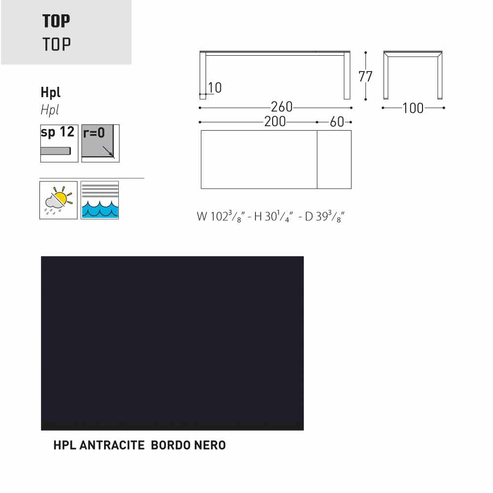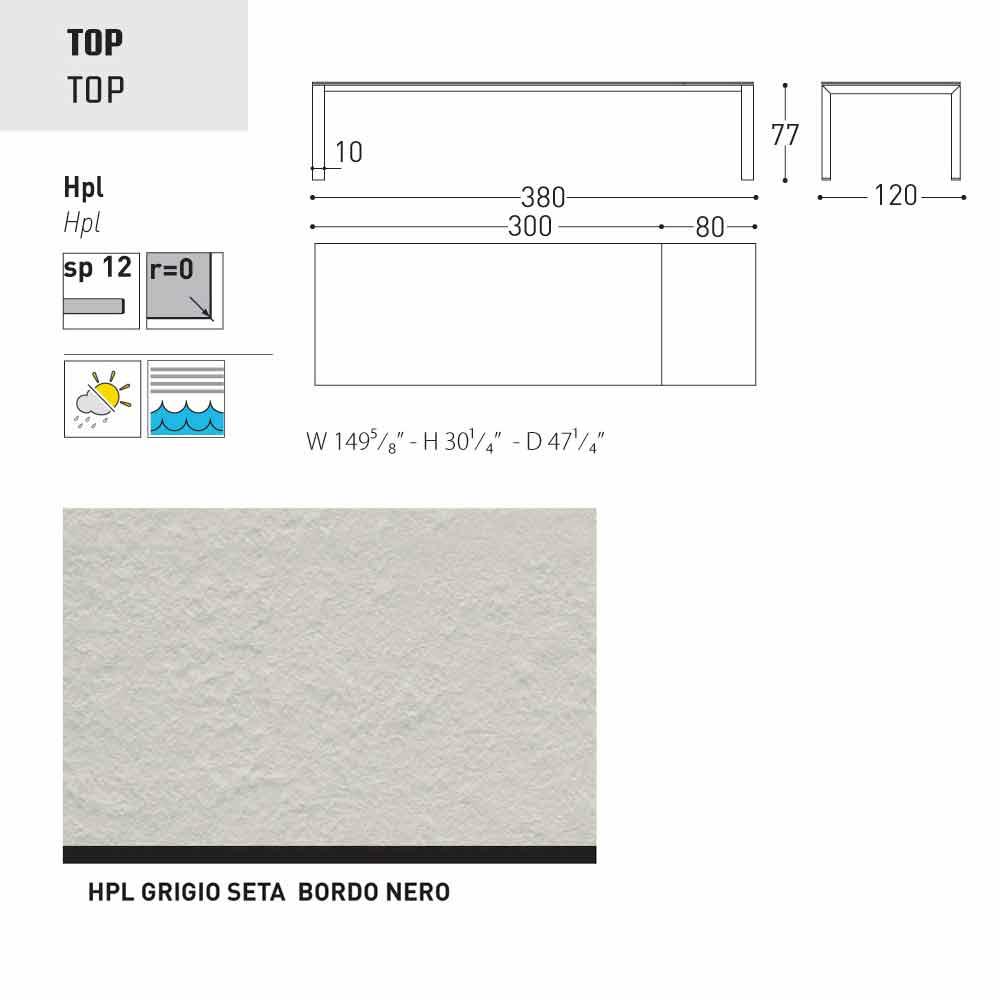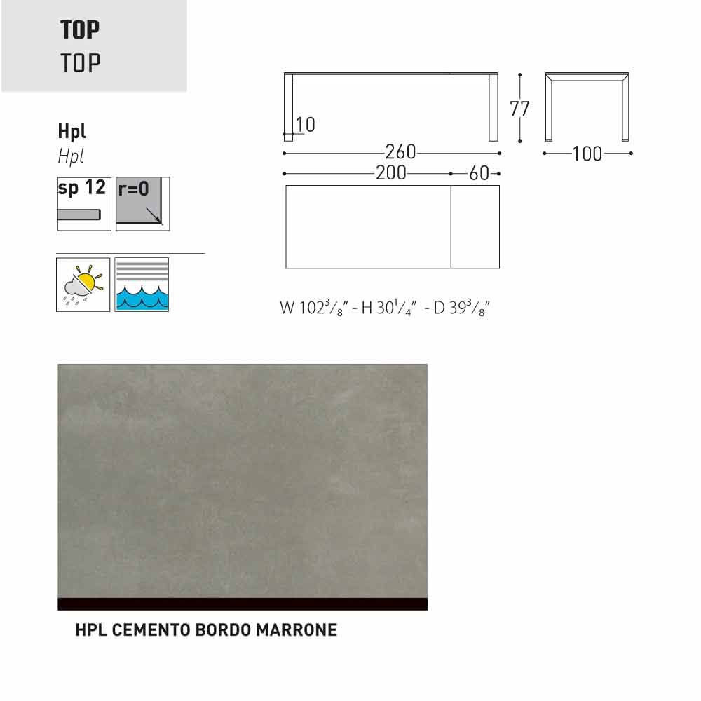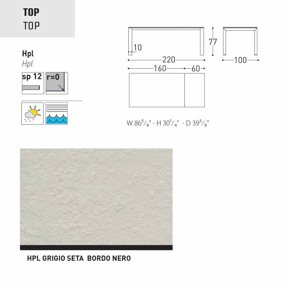 Dolmen ist ein ausziehbarer Gartentisch mit einer pulverbeschichteter Aluminiumstruktur in grau oder weiss lackiert; mit einer Tischplatte aus HPL ( Dicke 1,2) finish: seidengrau - Tischkante schwarz, weiss - Tischkante schwarz, anthrazit - Tischkante schwarz, weiss - Tischkante weiss, Zementfarben - Tischkante braun, Bedonia Stein - Tischkante braun, Cortenfarben - Tischkante braun.