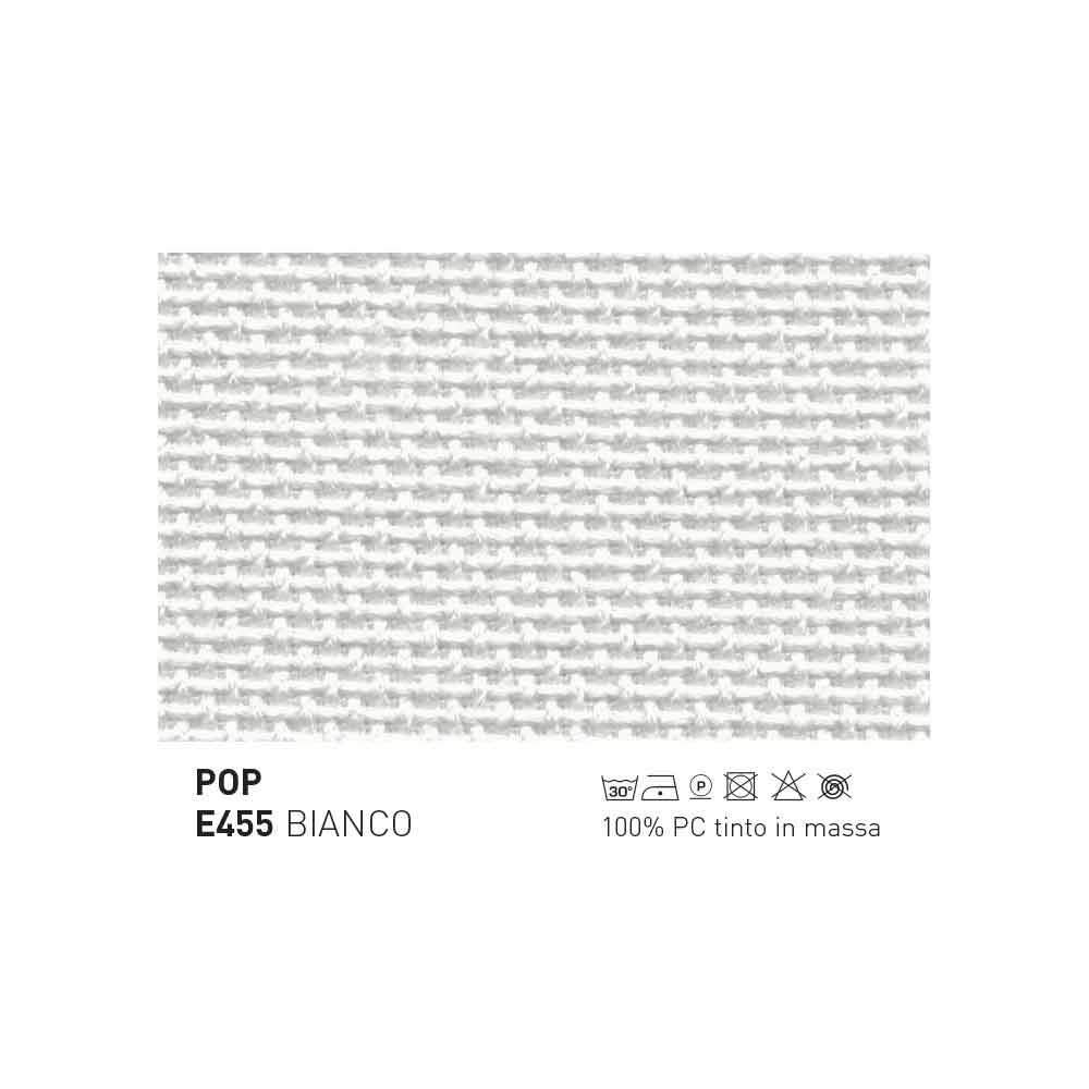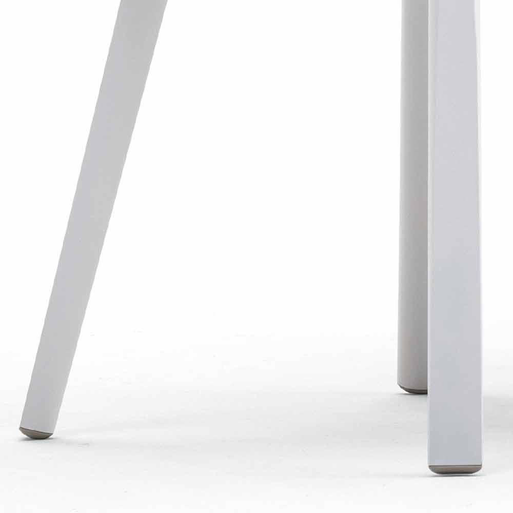 Die Beine sind aus lackiertem weissem Aluminium und die Sitzfläche ist aus Stoff bezogen mit einer Sitzstruktur aus Polypropylen.