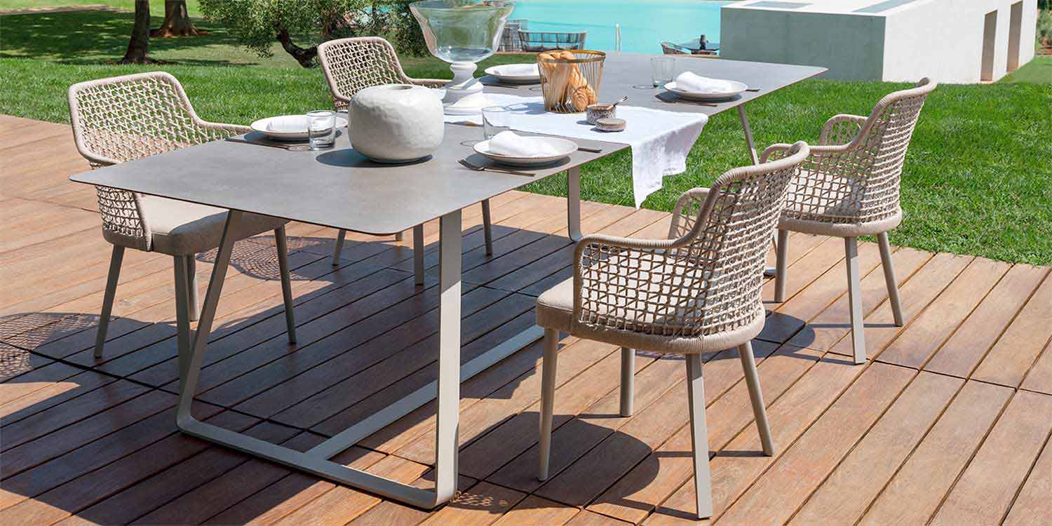 Perfekt um Außenbereiche wie Terrassen, Pools, Gärten einzurichten, aber es findet sich auch im Wohnbereich eine perfekte Platzierung.