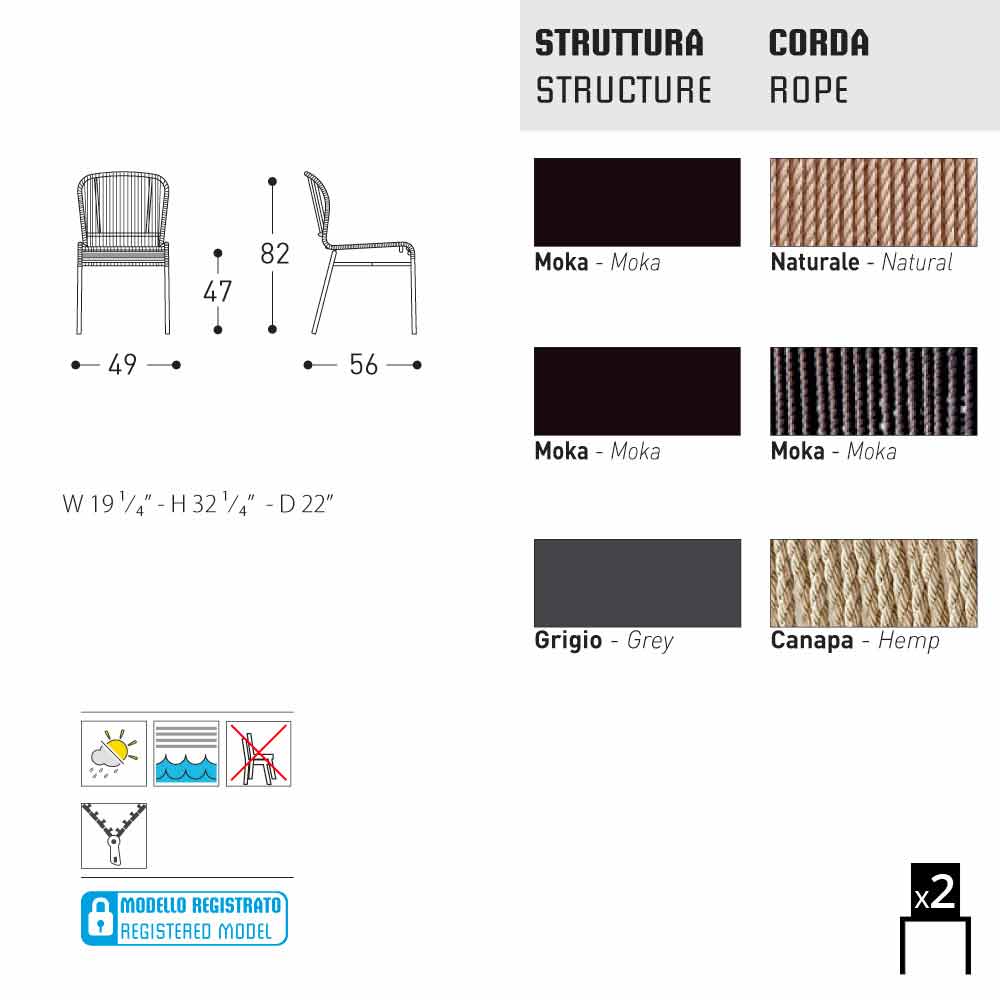 Varaschin Chricket Outdoor Stühle handgeflechtet, 2 Teile