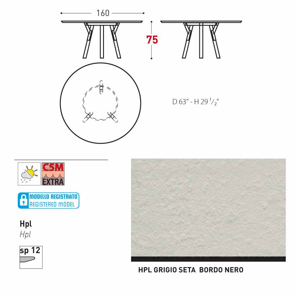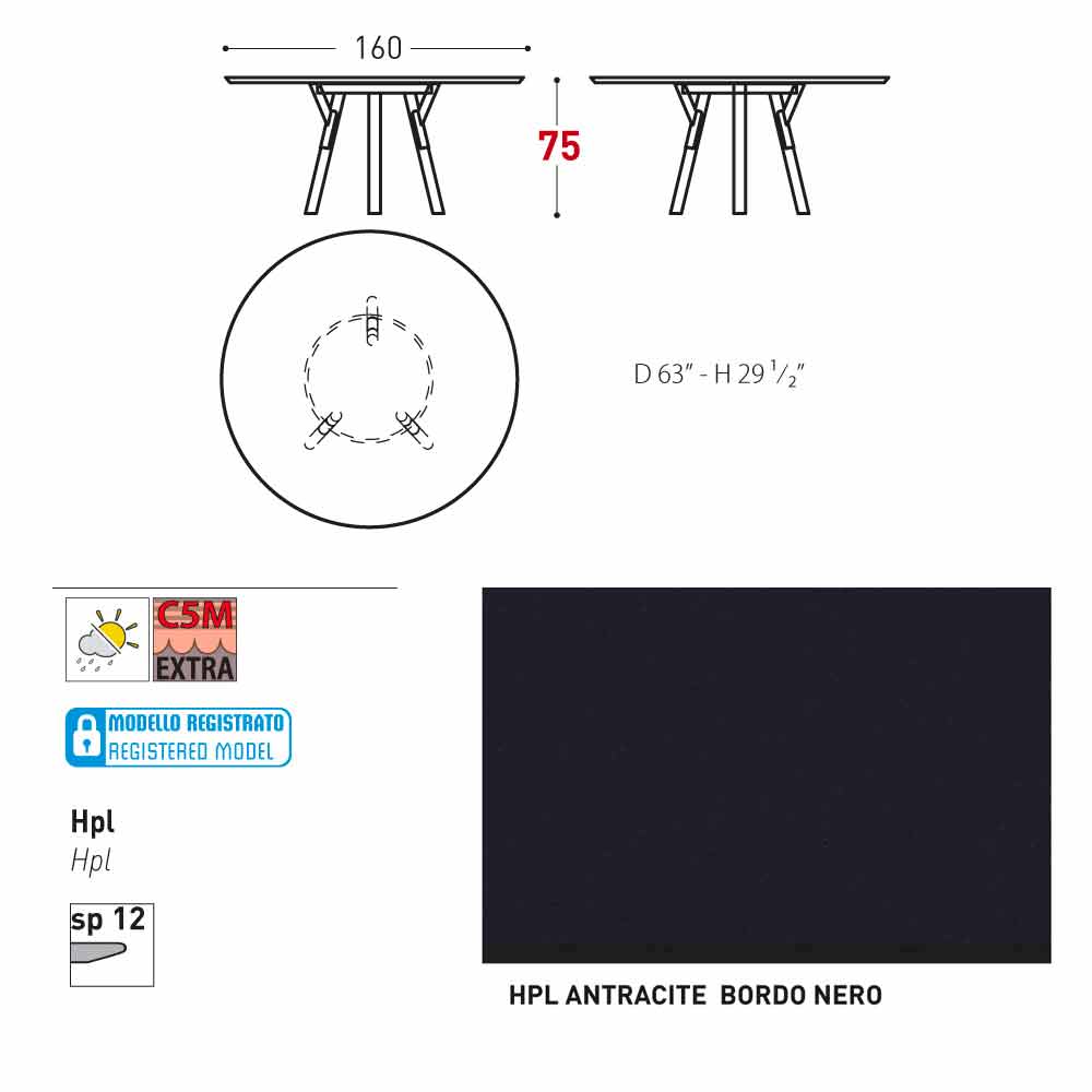 HPL Charaktereigenschaften: HPL heißt High Pressure Laminate. Diese Laminate bestehen aus mehreren Schichten Papier 70% mit einer 30% igen Harz Beschichtung, die unter hohem Druck zusammengefügt wurden. HPL-Platte (auf Basis thermohärtender Harze, homogen verstärkt mit Holzfasern, unter hohem Druck und Temperatur verpresst, der Pressvorgang dauert ca. 40 - 45 min). Das Ergebnis ist eine kompakte feste Tischplatte resistenter als je zuvor, die sowohl im Innenbereich, im Außenberich als auch im Marinebereich anewendet werden kann.
