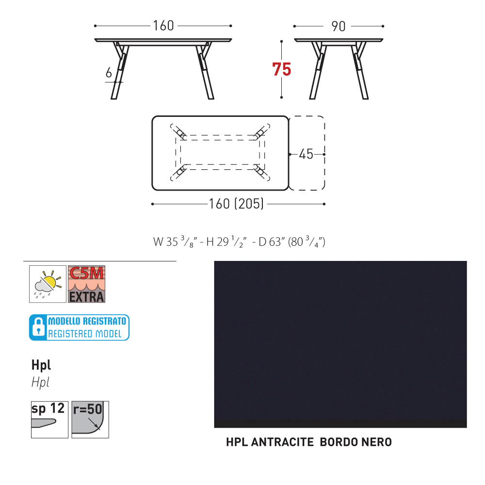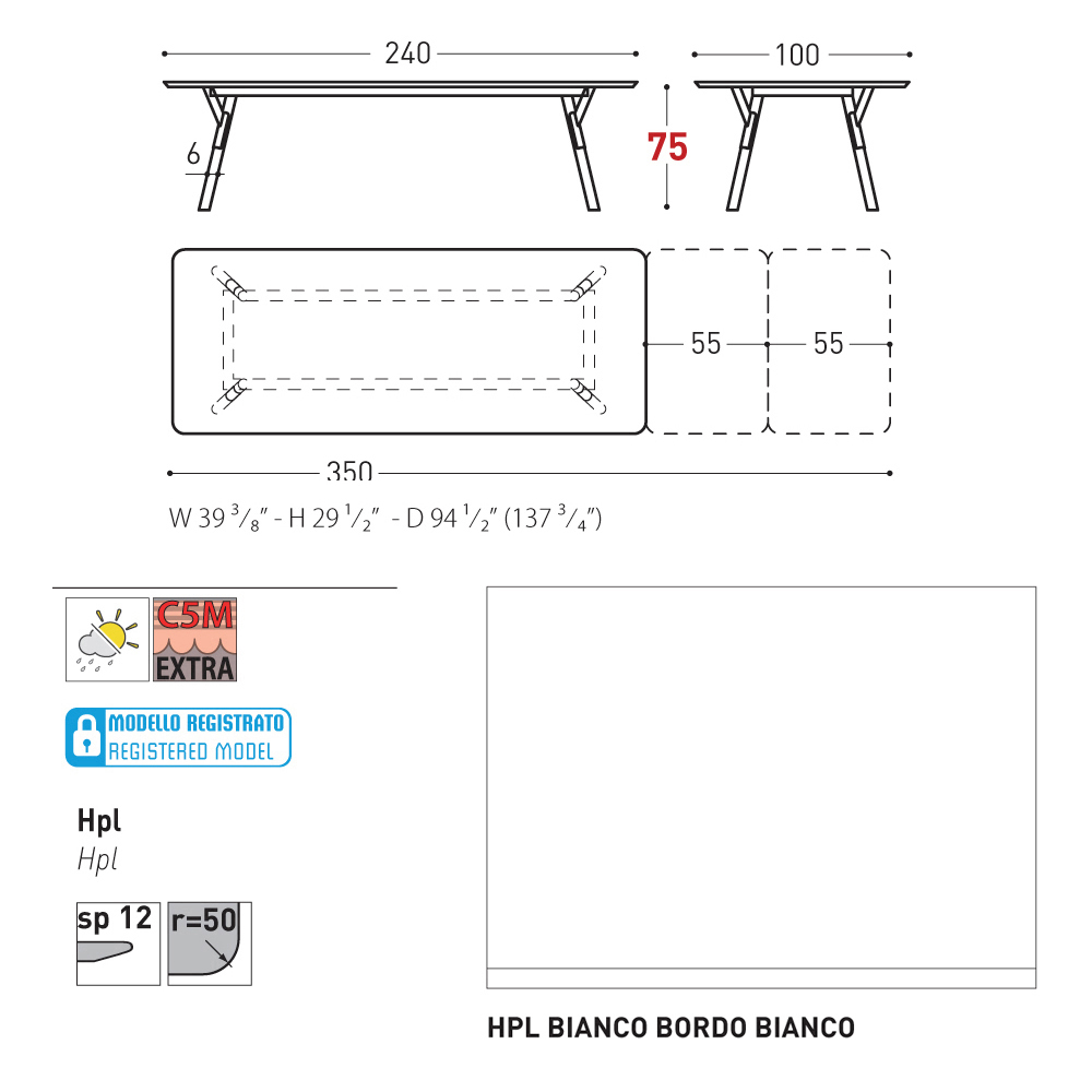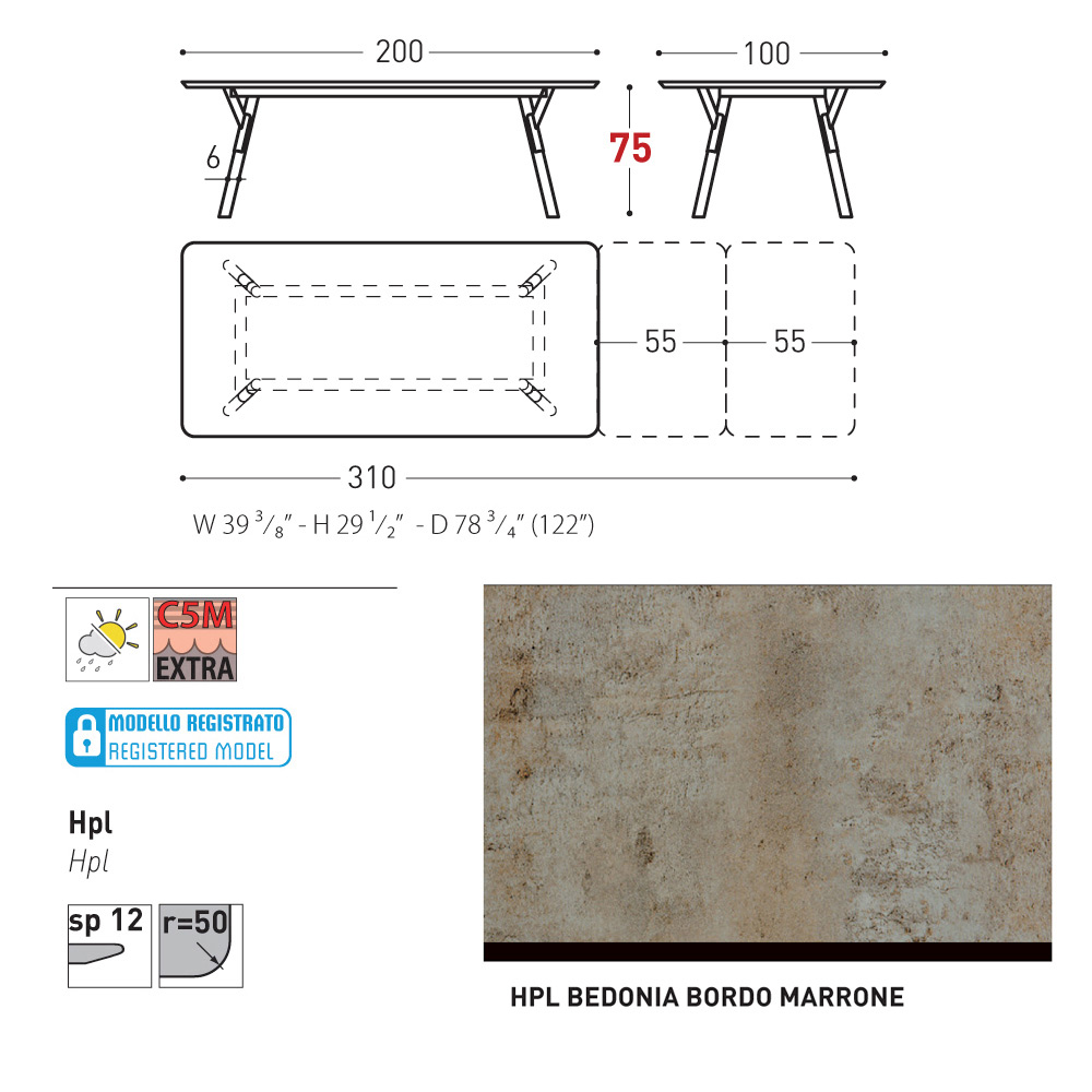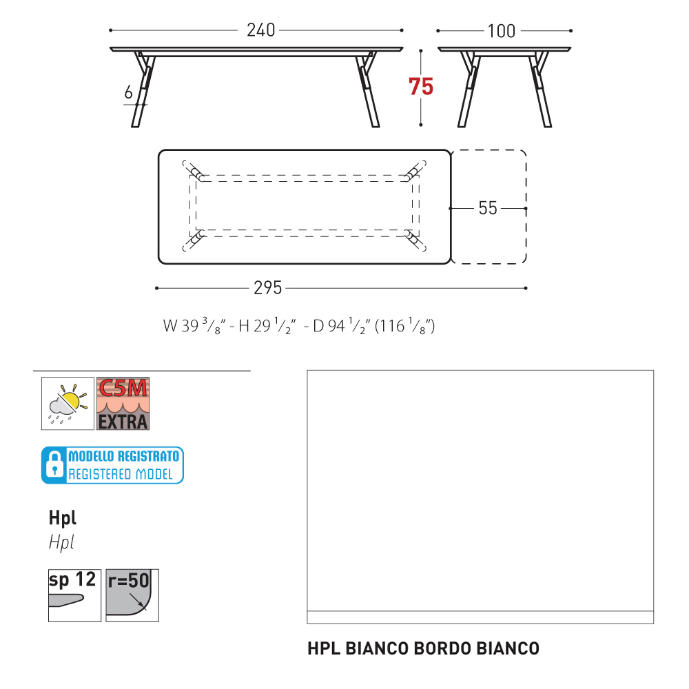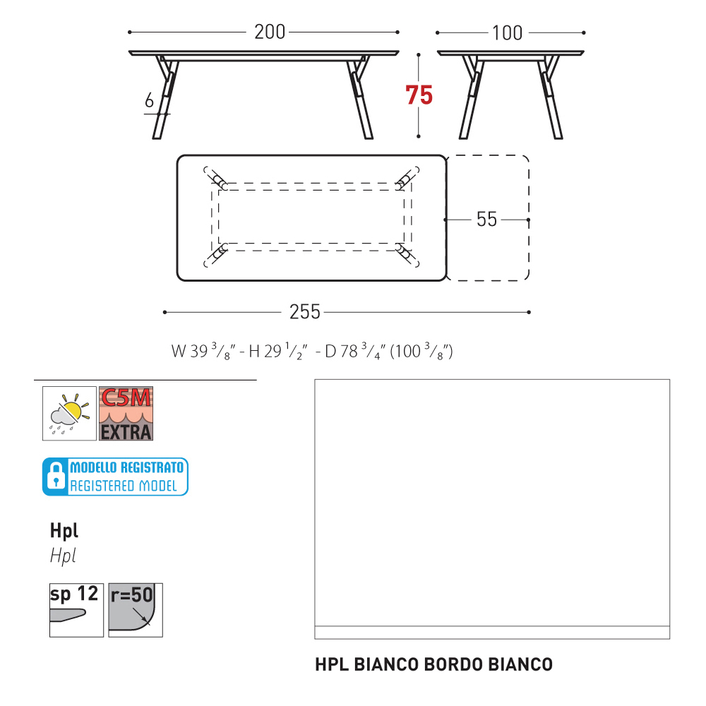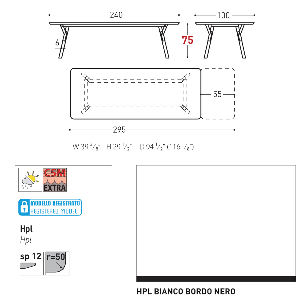 Link ist ein moderner Designtisch mit Struktur (Klammer + Beine) aus lackiertem Edelstahl. Die Platte ist in HPL (Stärke 12 mm) oder in Teakholz (Stärke 30 mm) erhältlich. Dank seines vielseitigen Designs kann er sowohl als ausziehbarer Outdoor-Tisch als auch zur Einrichtung von Innenräumen verwendet werden. Es sind verschiedene Ausführungen erhältlich, mit denen die Struktur, die Beine und die Tischplatte individuell gestaltet werden können.