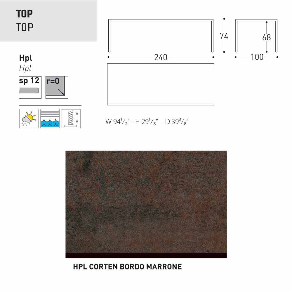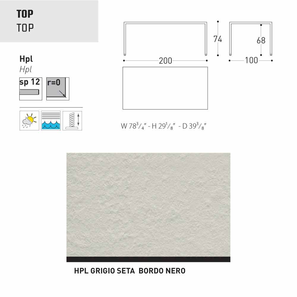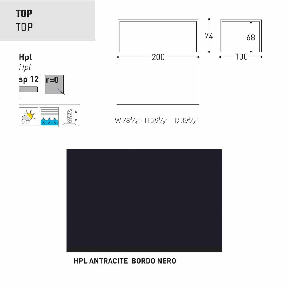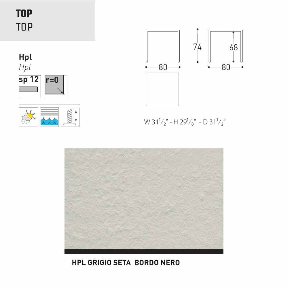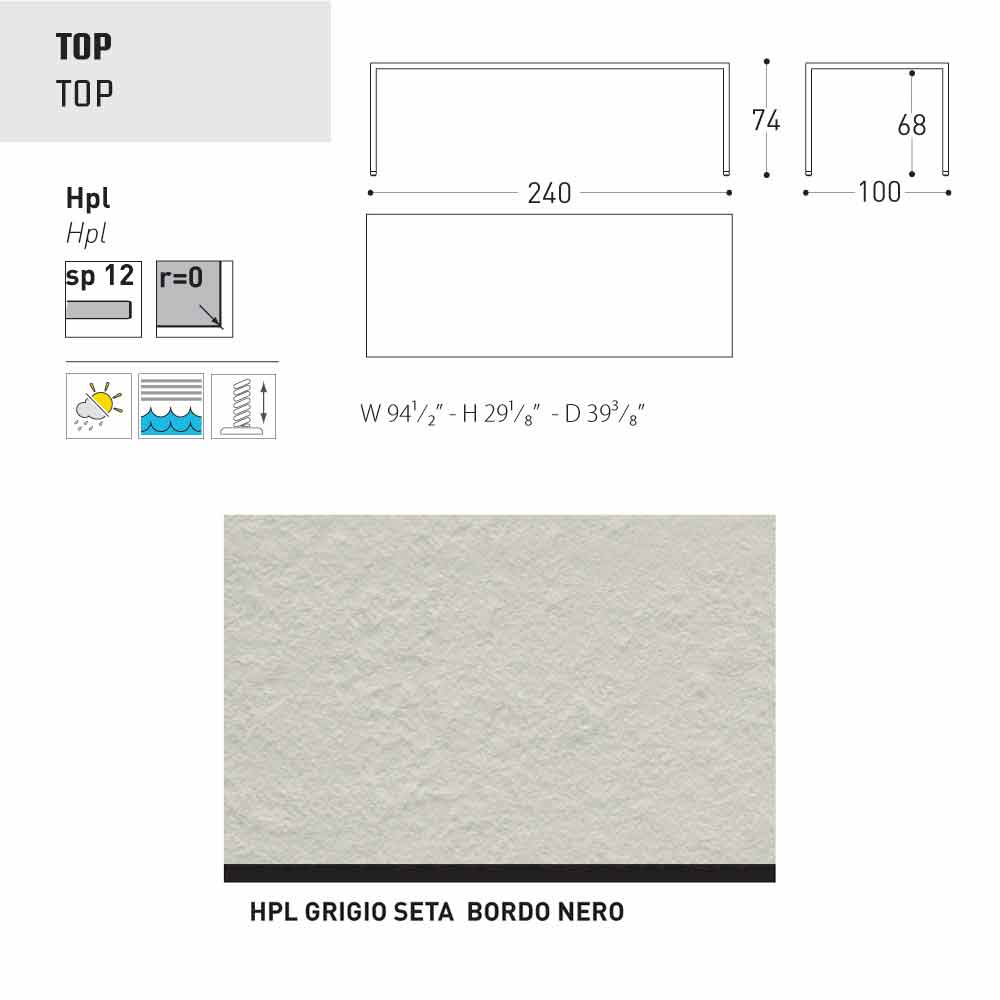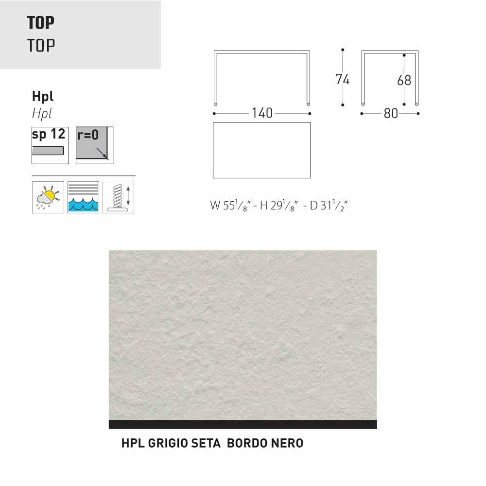 HPL heißt High Pressure Laminate. Diese Laminate bestehen aus mehreren Schichten Papier 70% mit einer 30% igen Harz Beschichtung, die unter hohem Druck zusammengefügt wurden.  HPL-Platte (auf Basis thermohärtender Harze, homogen verstärkt mit Holzfasern, unter hohem Druck und Temperatur verpresst, der Pressvorgang dauert ca. 40 - 45 min). Das Ergebnis ist eine kompakte feste Tischplatte resistenter als je zuvor, die sowohl im Innenbereich, im Außenberich als auch im Marinebereich anewendet werden kann.