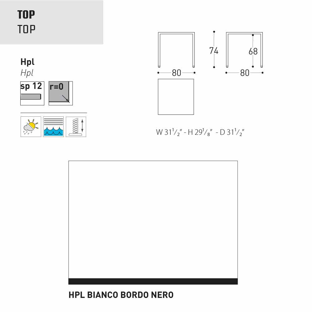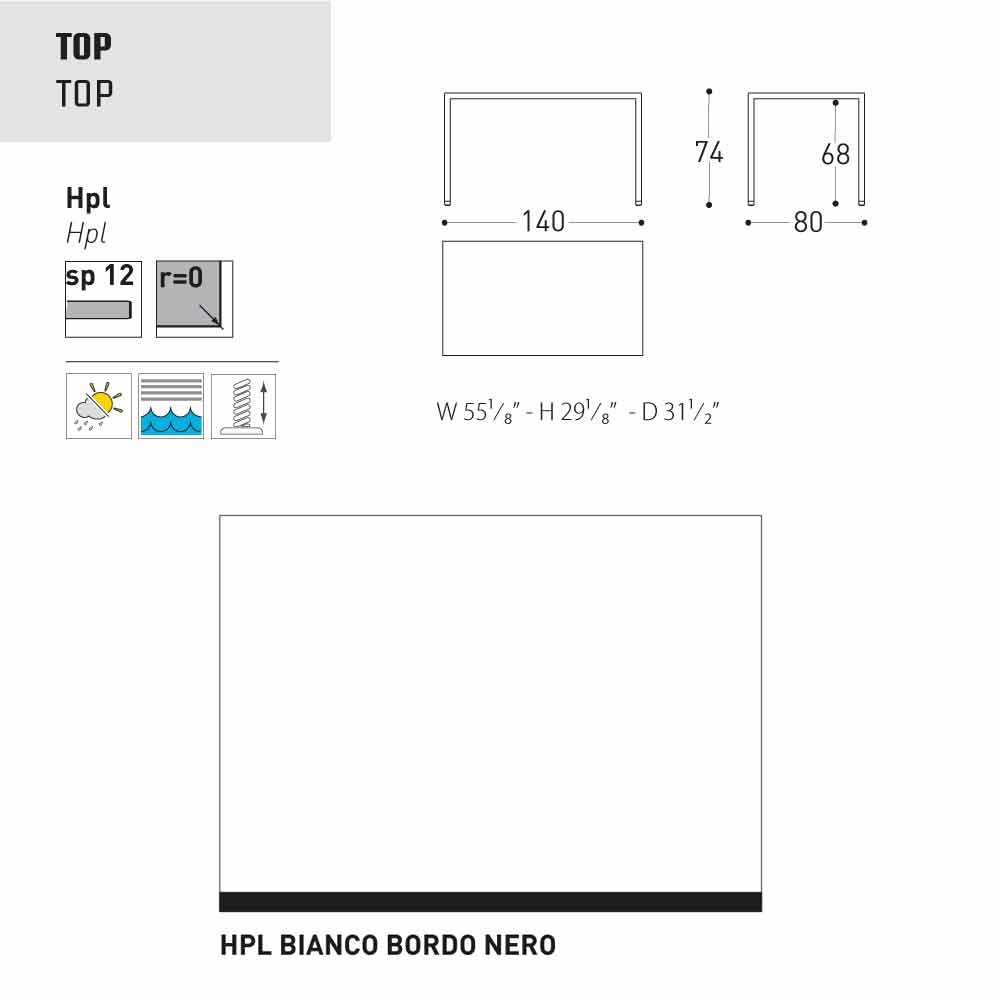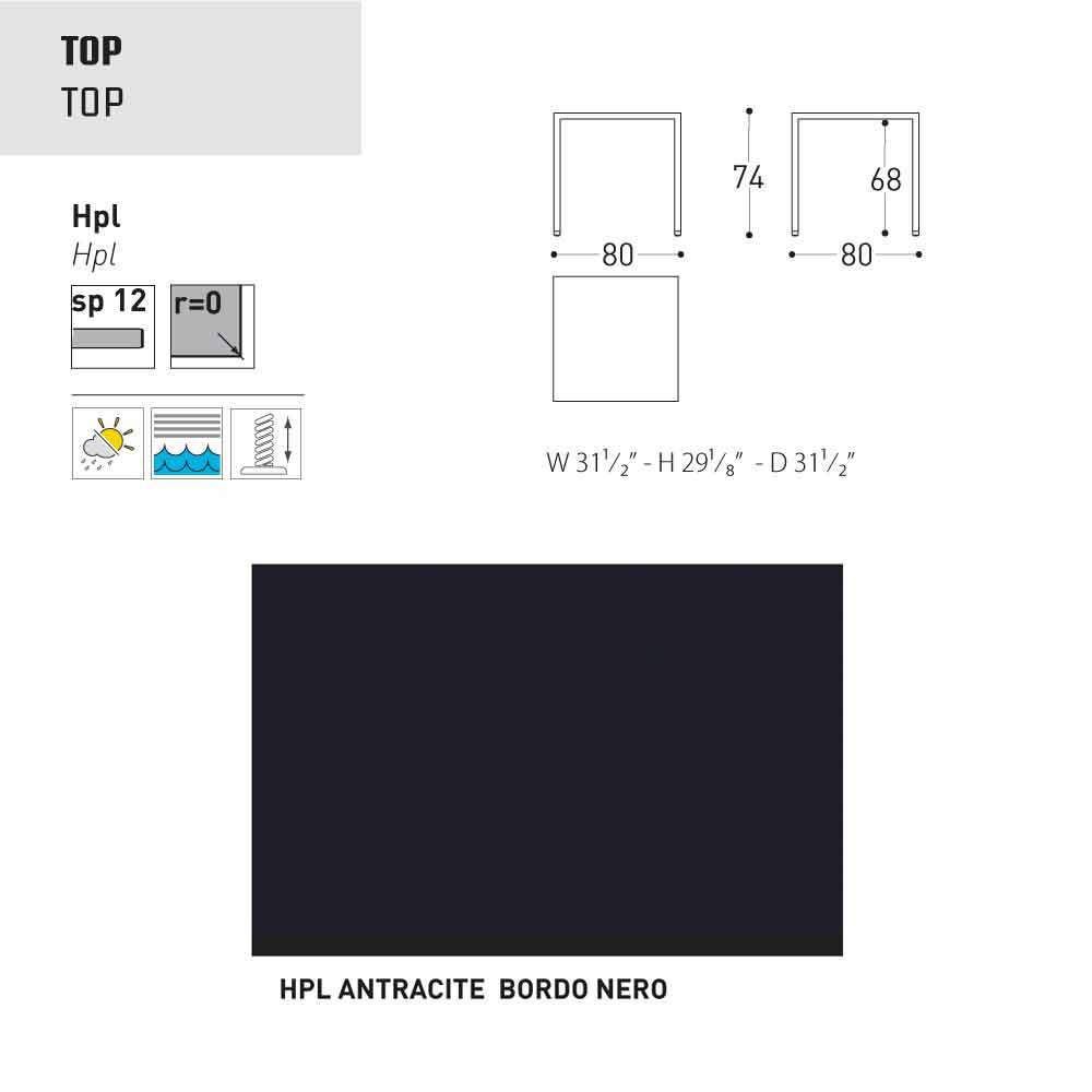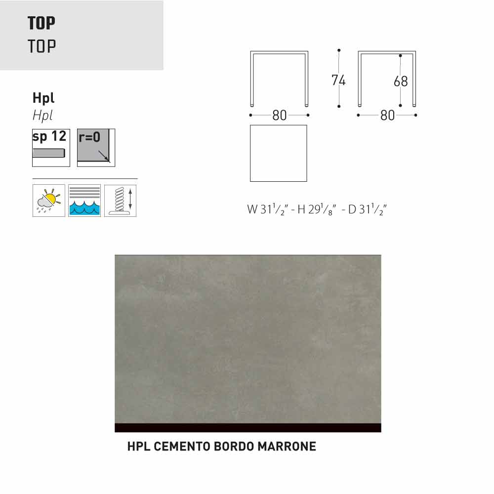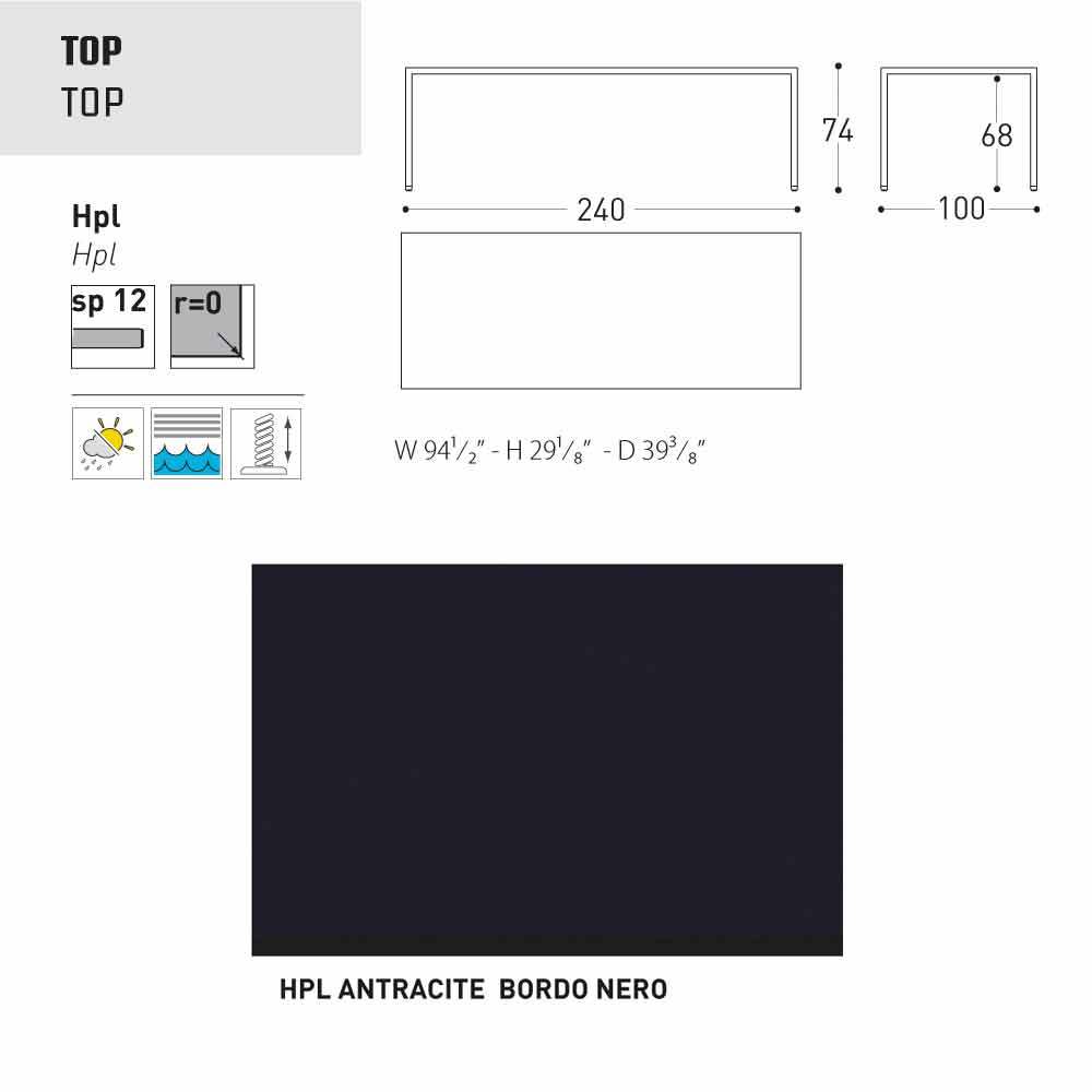 HPL heißt High Pressure Laminate. Diese Laminate bestehen aus mehreren Schichten Papier 70% mit einer 30% igen Harz Beschichtung, die unter hohem Druck zusammengefügt wurden.  HPL-Platte (auf Basis thermohärtender Harze, homogen verstärkt mit Holzfasern, unter hohem Druck und Temperatur verpresst, der Pressvorgang dauert ca. 40 - 45 min). Das Ergebnis ist eine kompakte feste Tischplatte resistenter als je zuvor, die sowohl im Innenbereich, im Außenberich als auch im Marinebereich anewendet werden kann.