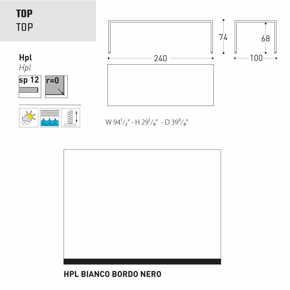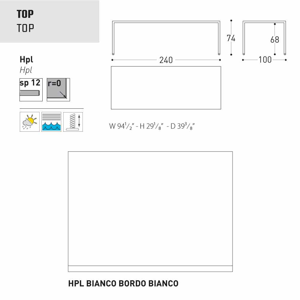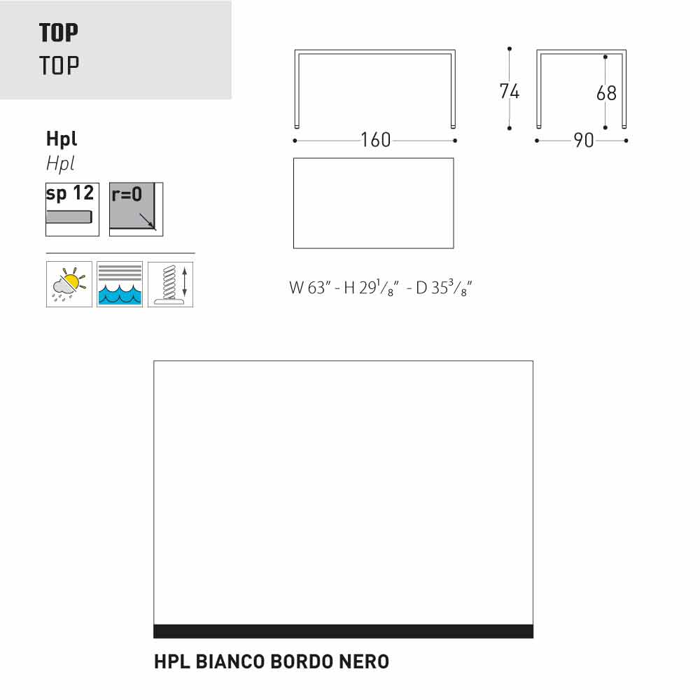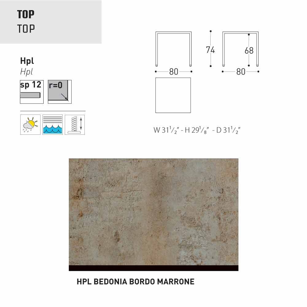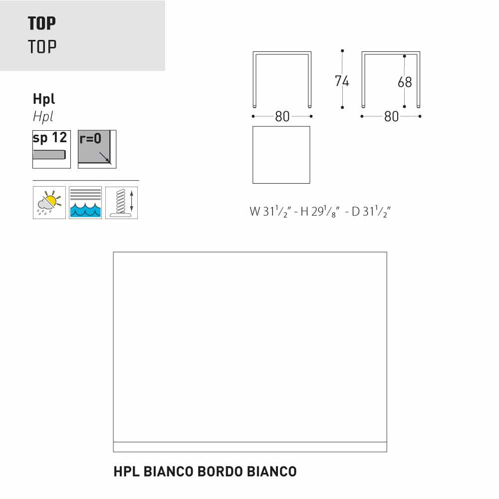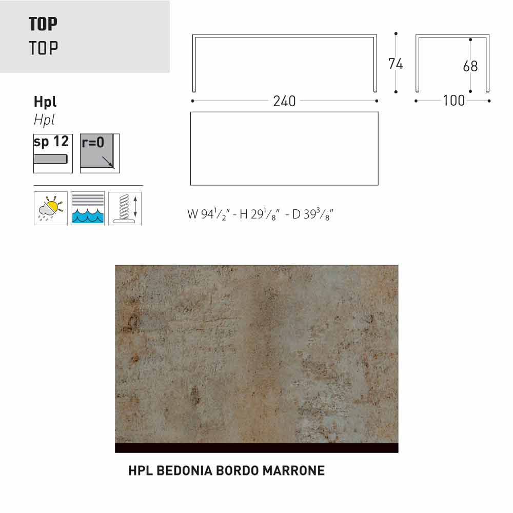 HPL heißt High Pressure Laminate. Diese Laminate bestehen aus mehreren Schichten Papier 70% mit einer 30% igen Harz Beschichtung, die unter hohem Druck zusammengefügt wurden.  HPL-Platte (auf Basis thermohärtender Harze, homogen verstärkt mit Holzfasern, unter hohem Druck und Temperatur verpresst, der Pressvorgang dauert ca. 40 - 45 min). Das Ergebnis ist eine kompakte feste Tischplatte resistenter als je zuvor, die sowohl im Innenbereich, im Außenberich als auch im Marinebereich anewendet werden kann.