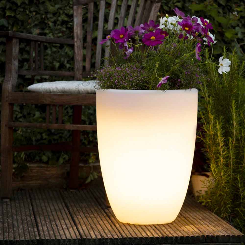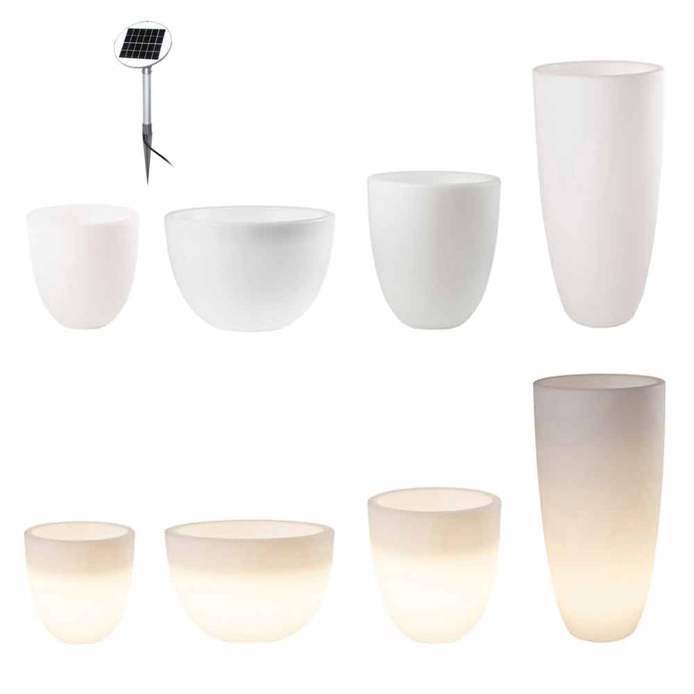 Leuchtende Vase in modernem und vielseitigem Design für drinnen oder draußen mit LED oder Solar in verschiedenen Größen.