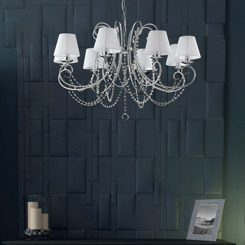 Verchromter Eisen-Kronleuchter mit Lampenschirmen, hergestellt in Italien - Prag