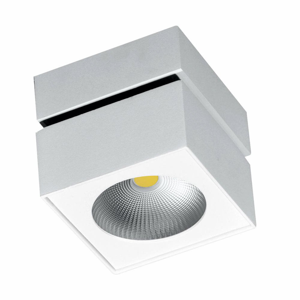 Dekorativer LED-Wand- oder Deckenstrahler mit quadratischer Aluminiumstruktur.