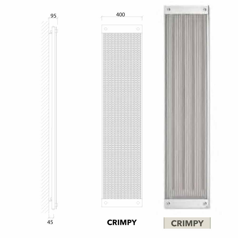 | Maße | L.400 mm, H.1800 mm, P.85 mm, Achsabstand 172 mm, Wärmeleistung 720 Watt, Kapazität: 10,2 lt, Gewicht: 29,5 kg |