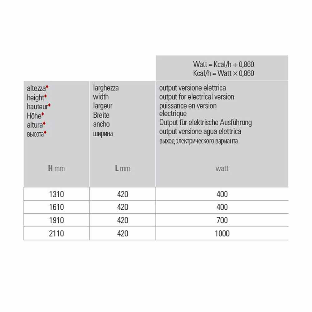 Der 110 mm Thermostat muss zur Höhe hinzugefügt werden. Einphasige 230-Volt-Stromversorgung. Zusätzlich zu den im Dropdown-Menü vorhandenen Ausführungen in verschiedenen Ausführungen erhältlich. Um dies herauszufinden, füllen Sie das Formular aus, um Informationen oder ein kostenloses Angebot zu erhalten. Weiße Thermostatbox als Standard für weiße Heizkörper; Chrom für die farbigen Heizkörper und Edelstahloberflächen.