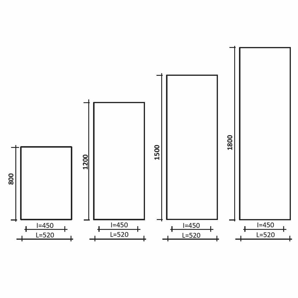• H 1800 x L 520 x Inter. 450 x P 65 mm x Ausgang w (Δt50 °) 868; Ausbeute w (Δt30 °) 445; Ausbeute w (Δt26 °) 375