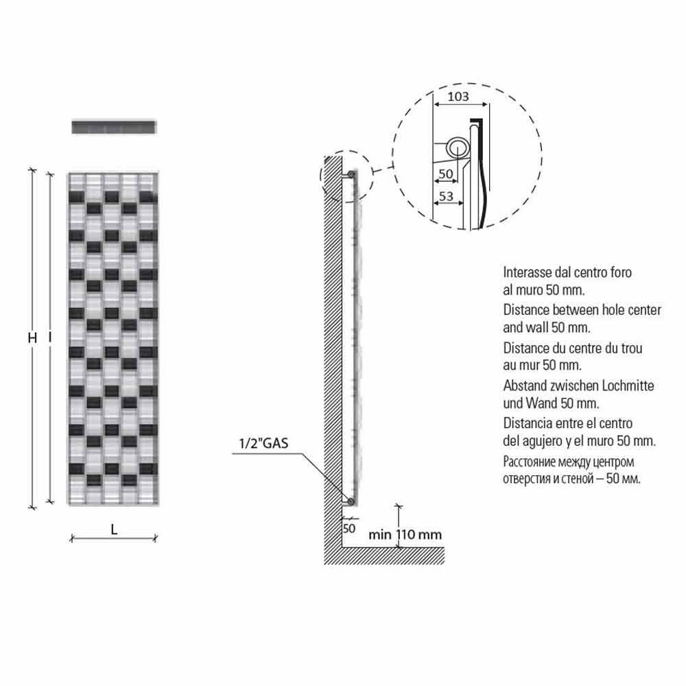 NB: Die Ventile und der Halter sind ausgeschlossen, um sie zu erhalten, schreiben Sie uns in das Formular "Informationen anfordern". Auf Anfrage ist auch der Handtuchhalter erhältlich , der die Breite des Heizkörpers um 18 mm verlängert und nicht im Preis enthalten ist.
