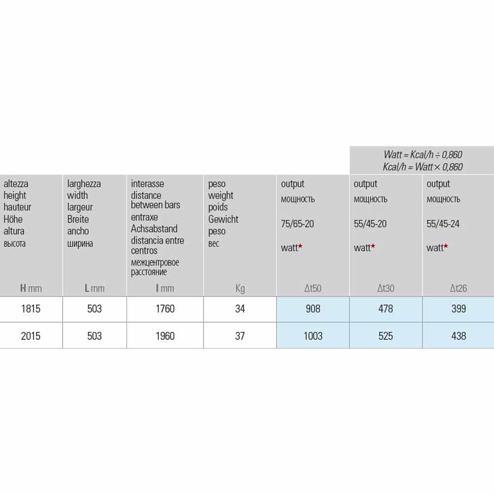 • H 1815 x L 503 x Inter. 1760 mm x Ausgang w (Δt50 *) 908; Ausbeute w (Δt30 *) 478; Ausbeute w (Δt26 *) 399