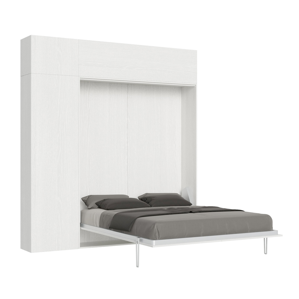 Der Bettrahmen besteht aus 18 mm dicken Melamin-Spanplatten und gewährleistet so Widerstandsfähigkeit und Langlebigkeit. Der Öffnungsmechanismus ist sanft und sicher und verwandelt die Wand mit einer einfachen Geste in ein bequemes Bett.