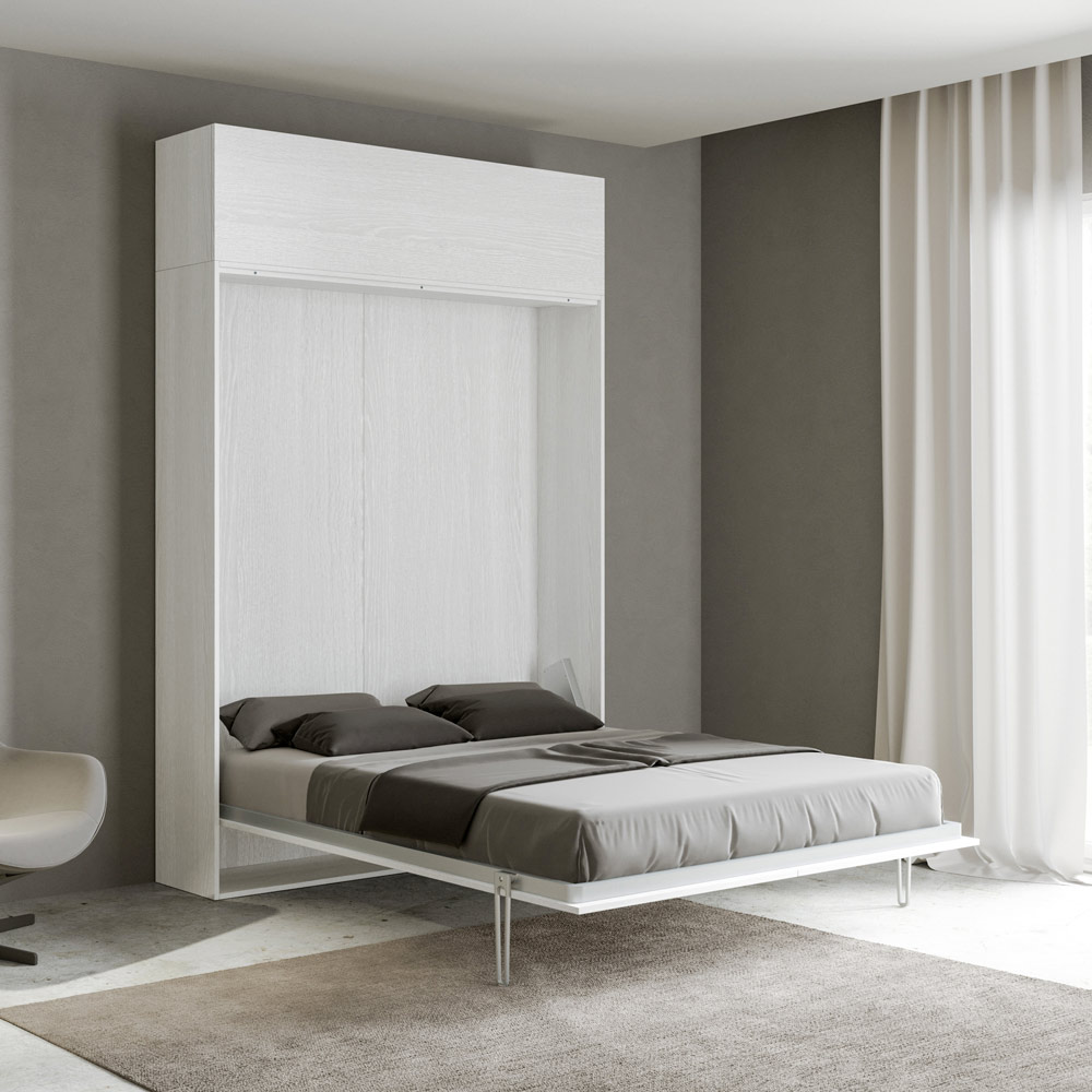 Der Bettrahmen besteht aus 18 mm dicken Melamin-Spanplatten und gewährleistet so Widerstandsfähigkeit und Langlebigkeit. Der Öffnungsmechanismus ist sanft und sicher und verwandelt die Wand mit einer einfachen Geste in ein bequemes Bett.