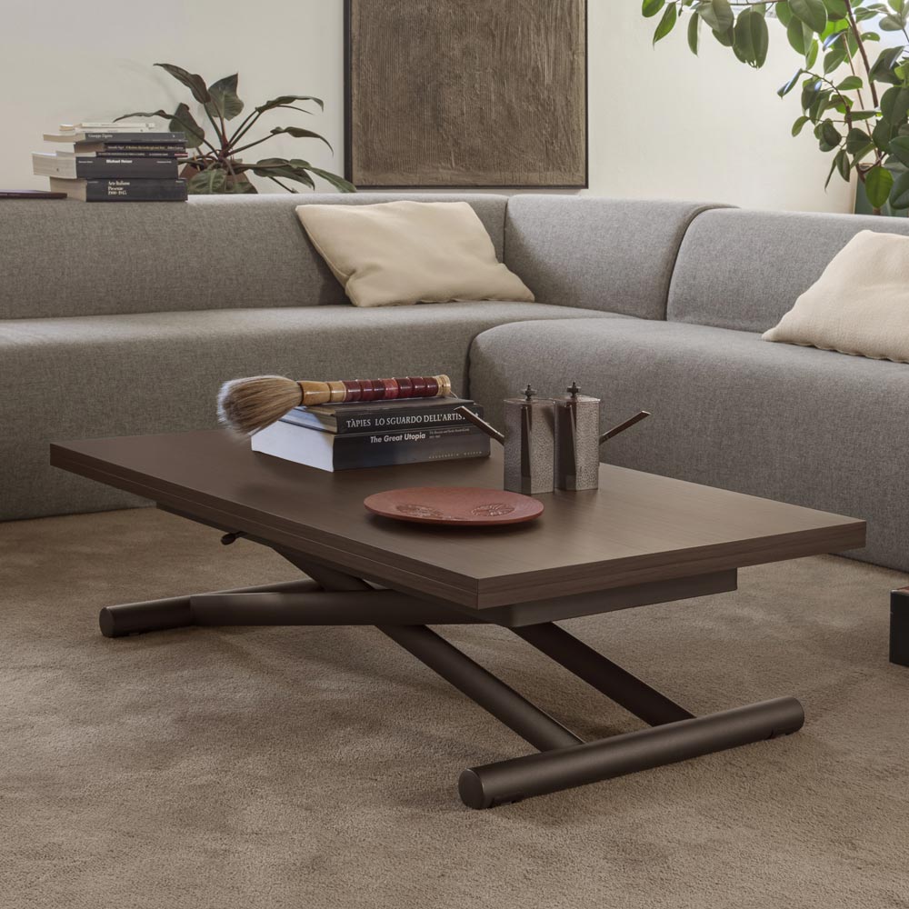 Verwandelbarer Couchtisch aus Melaminholz und Metall Made in Italy.