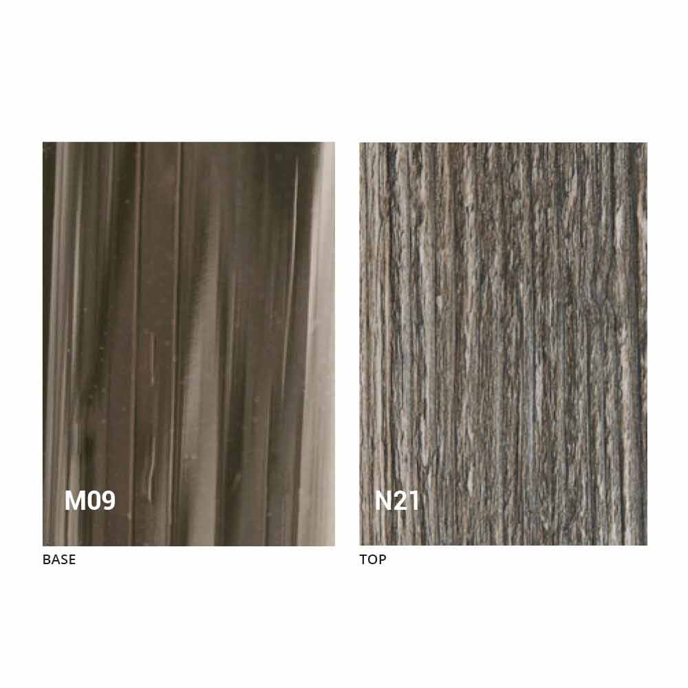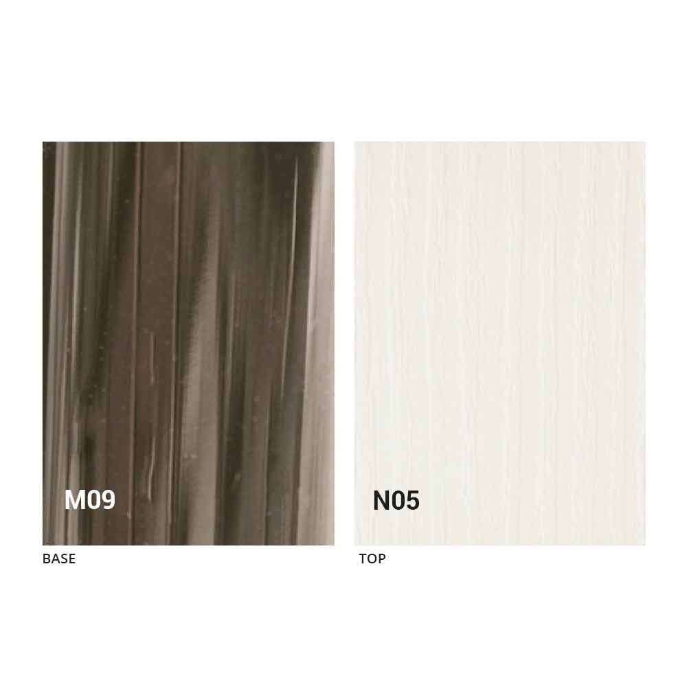 - Tischplatte aus aschgrauem, harzbeschichtetem Holz;
