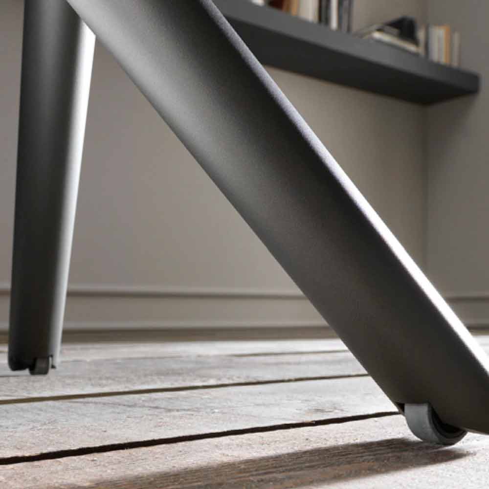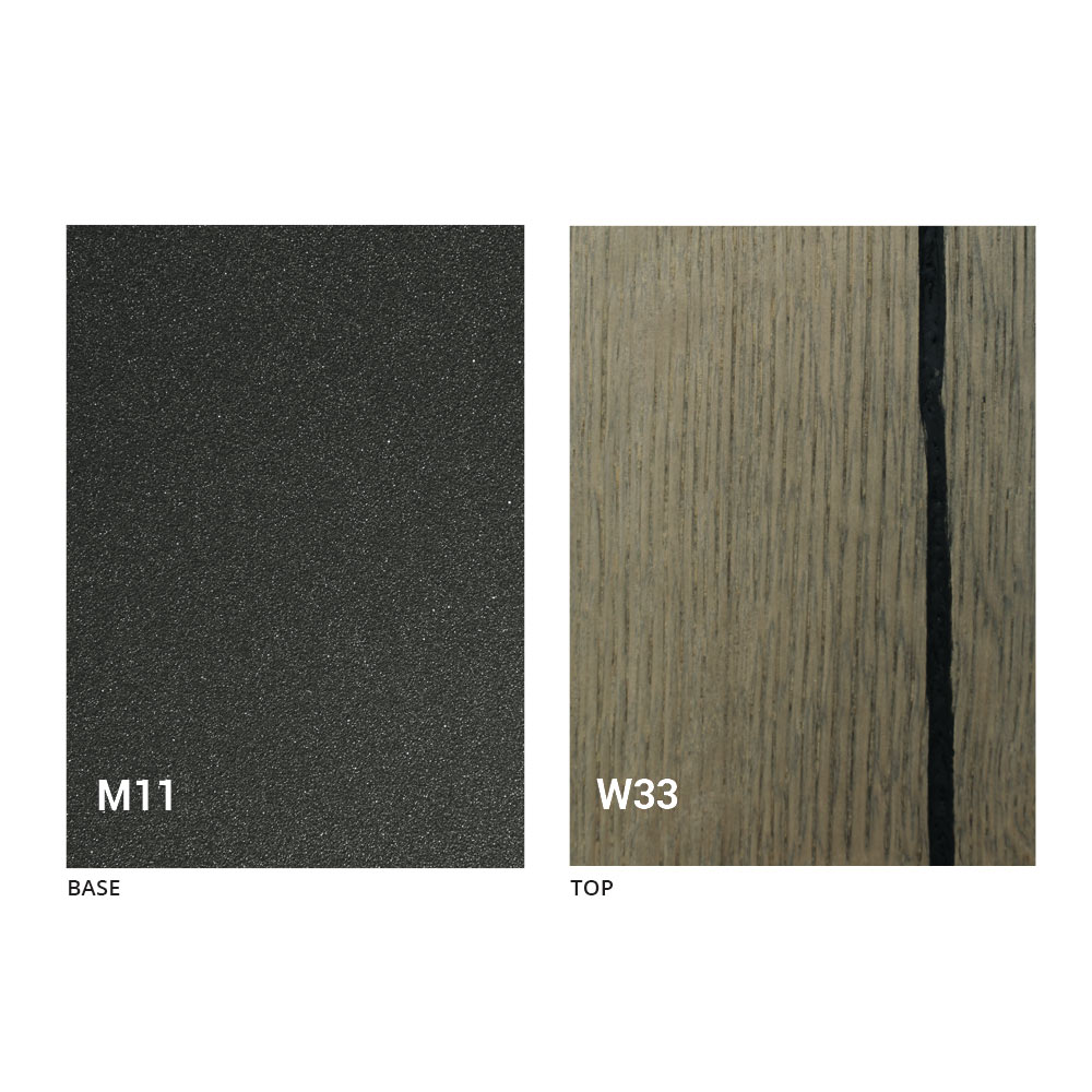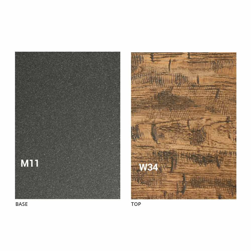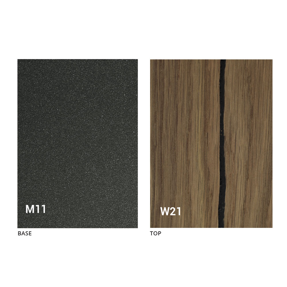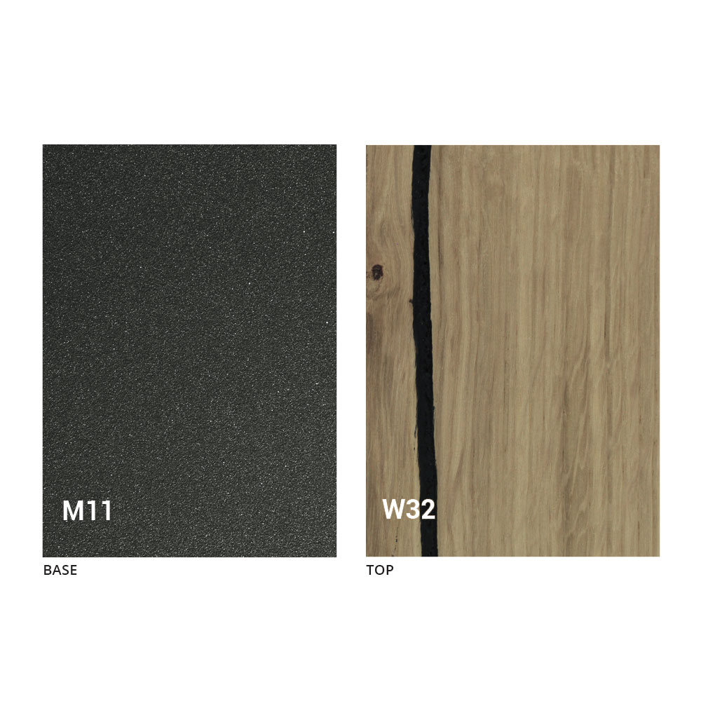 Mit Massivholzplatteund eine mit geprägtem Graphit lackierte Metallbasis.
